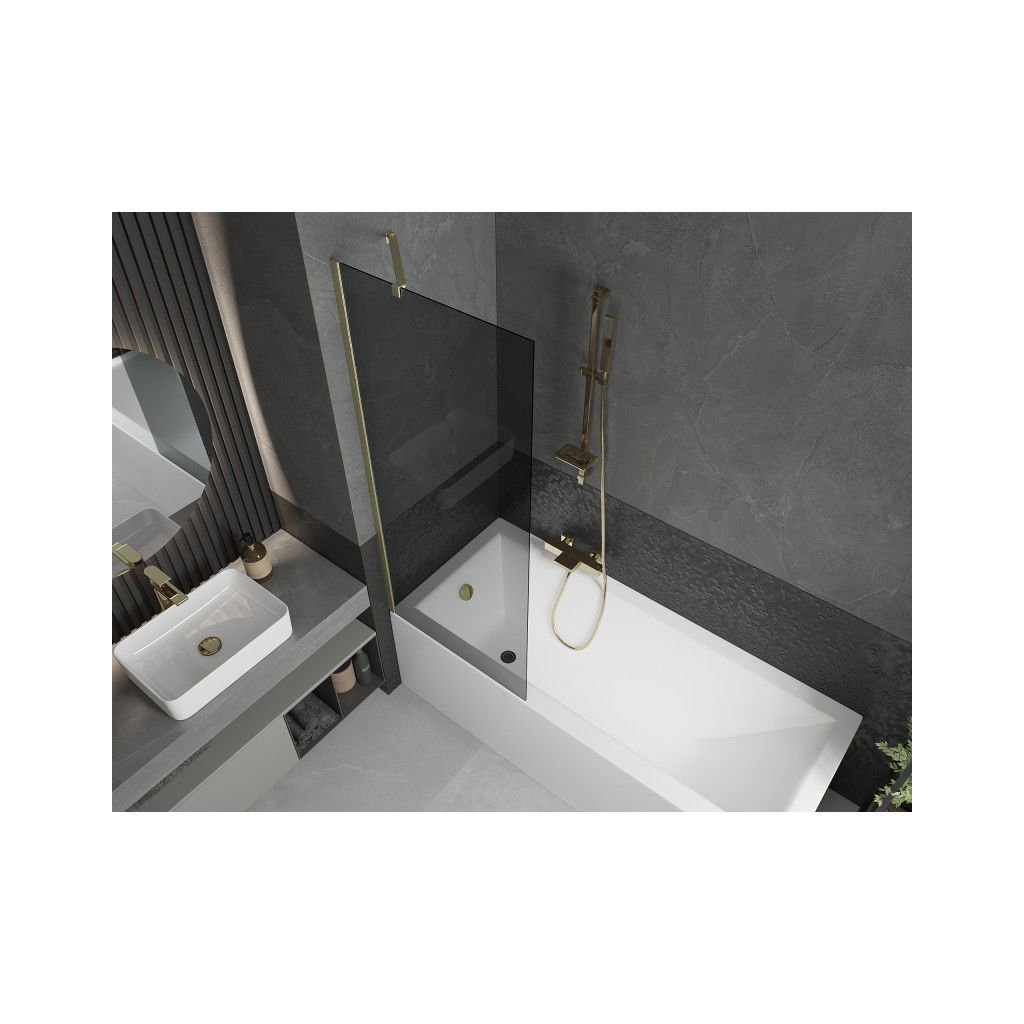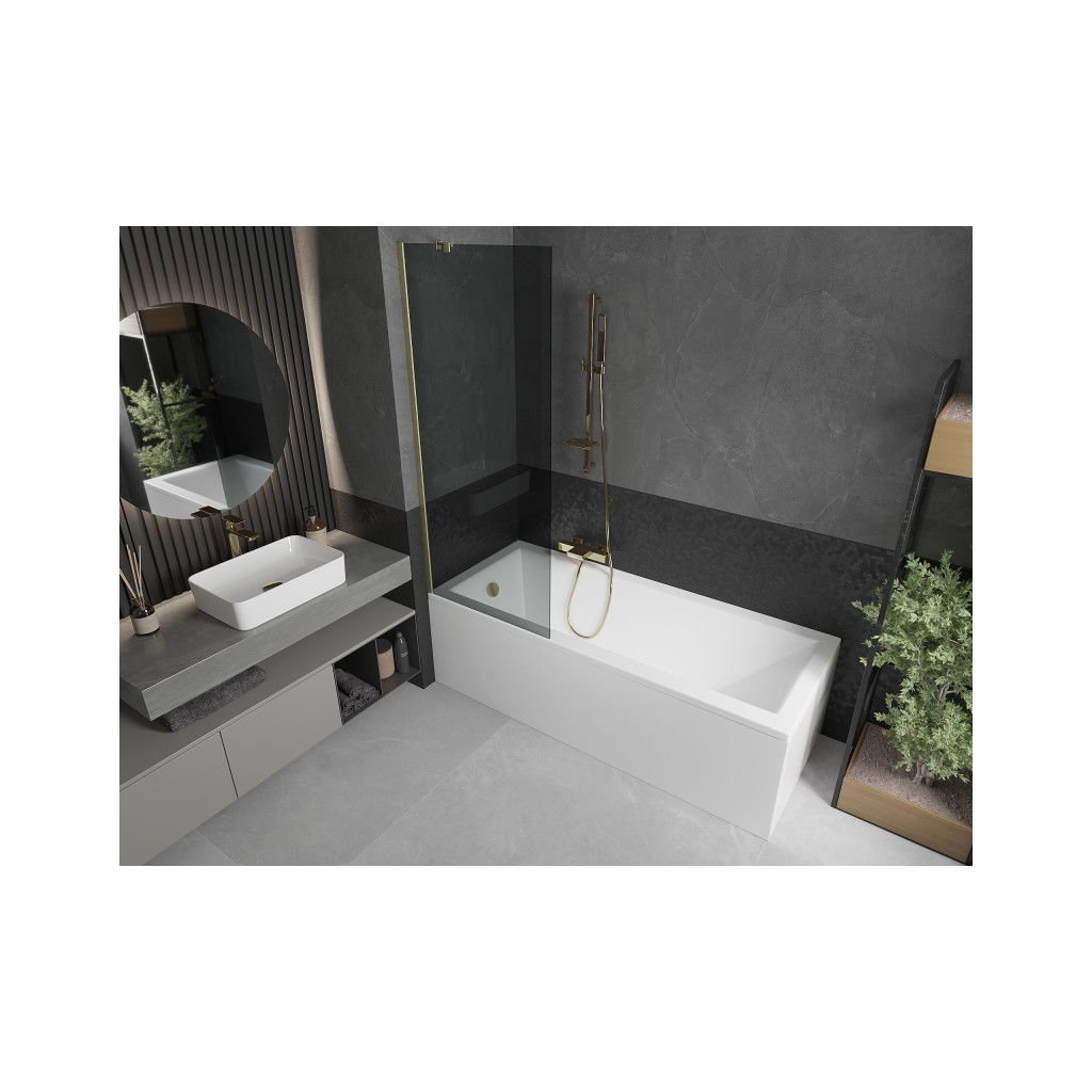 Mexen Next, 1-křídlová vanová zástěna 70 x 150 cm, 6mm šedé sklo, zlatá matná, 895-070-000-00-40-55