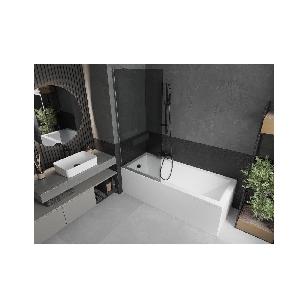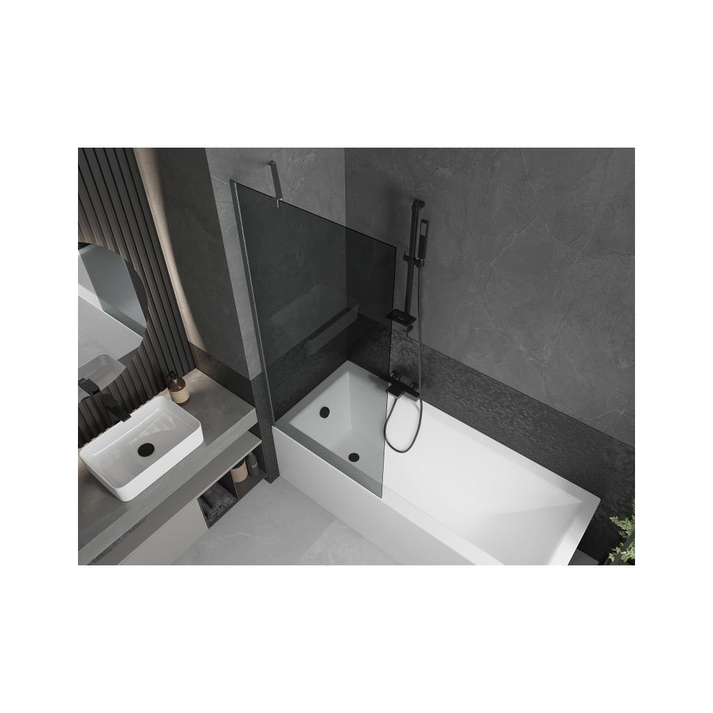 Mexen Next, 1-křídlová vanová zástěna 80 x 150 cm, 6mm šedé sklo, broušená grafitová, 895-080-000-00-40-66