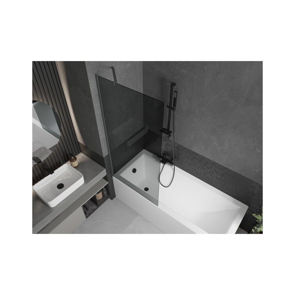 Mexen Next, 1-křídlová vanová zástěna 80 x 150 cm, 6mm šedé sklo, grafitová, 895-080-000-00-40-95