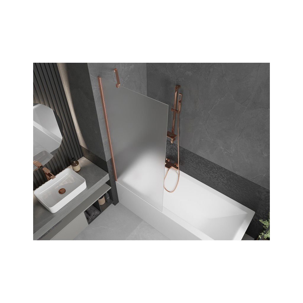 Mexen Next, 1-křídlová vanová zástěna 80 x 150 cm, 6mm sklo námraza, měděná matná, 895-080-000-00-30-65