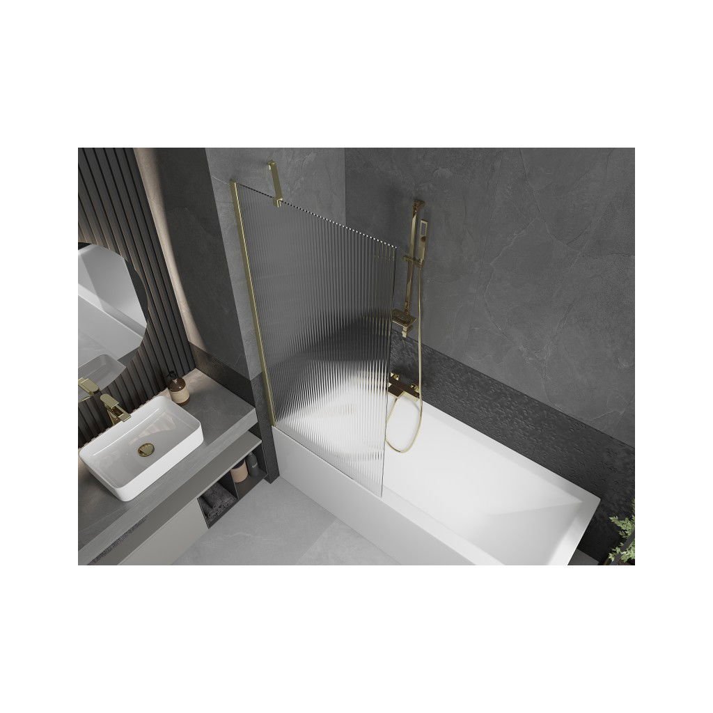 Mexen Next, 1-křídlová vanová zástěna 80 x 150 cm, 6mm sklo Ribs, zlatá matná, 895-080-000-00-09-55