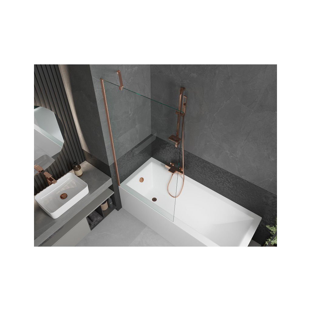 Mexen Next, 1-křídlová vanová zástěna 90 x 150 cm, 6mm čiré sklo, měděná matná, 895-090-000-00-00-65