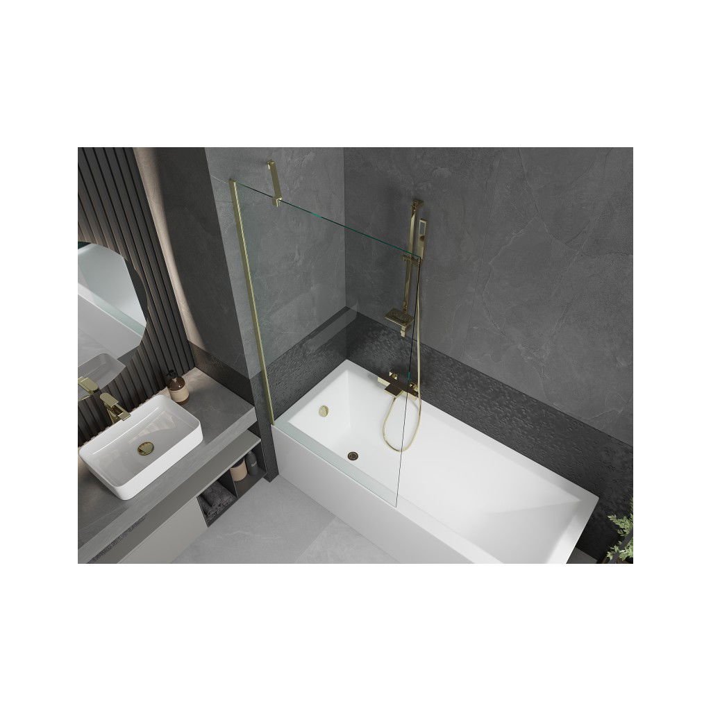 Mexen Next, 1-křídlová vanová zástěna 90 x 150 cm, 6mm čiré sklo, zlatá matná, 895-090-000-00-00-55