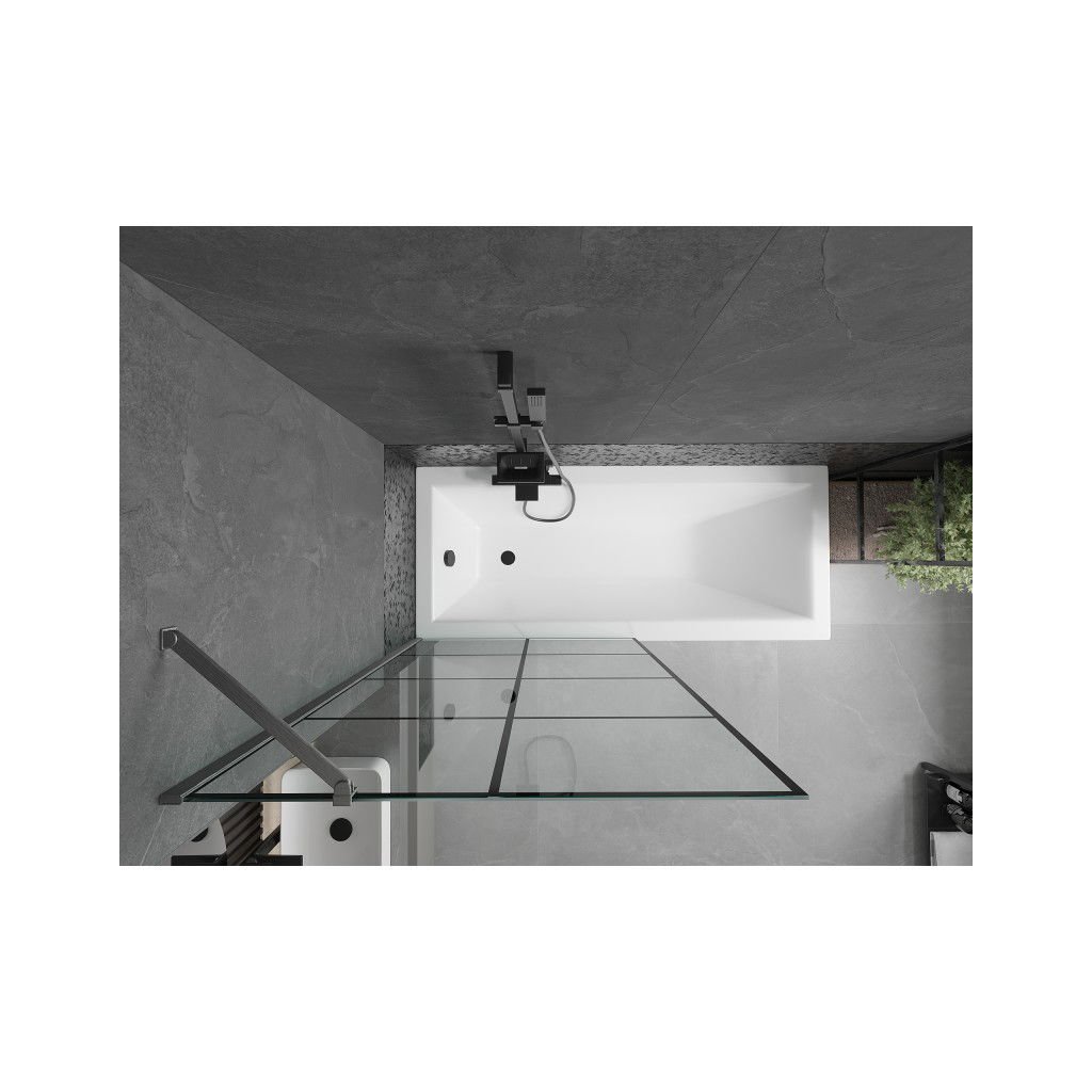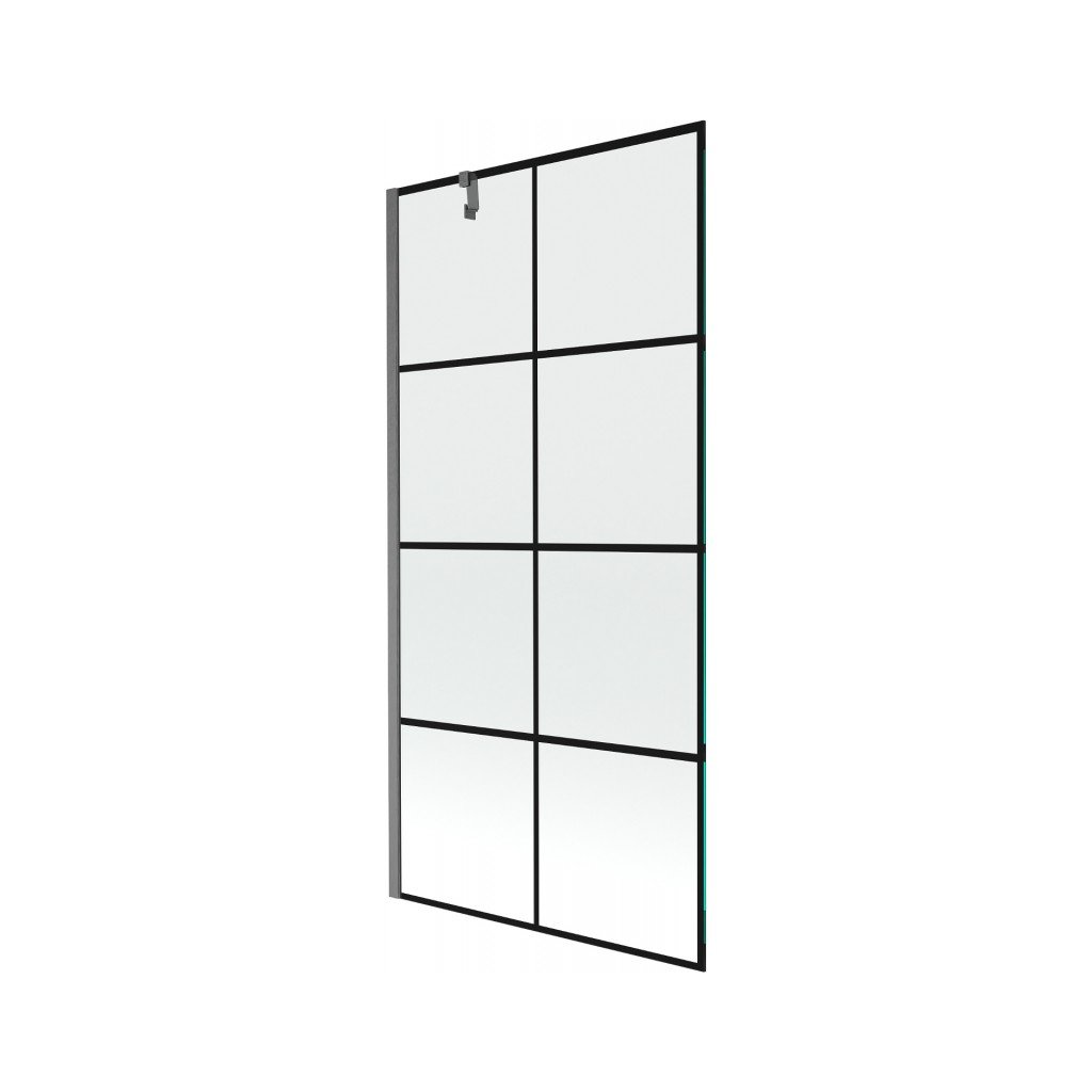 Mexen Next, 1-křídlová vanová zástěna 90 x 150 cm, 6mm čiré sklo - černý vzor, broušený grafit, 895-090-000-00-77-66