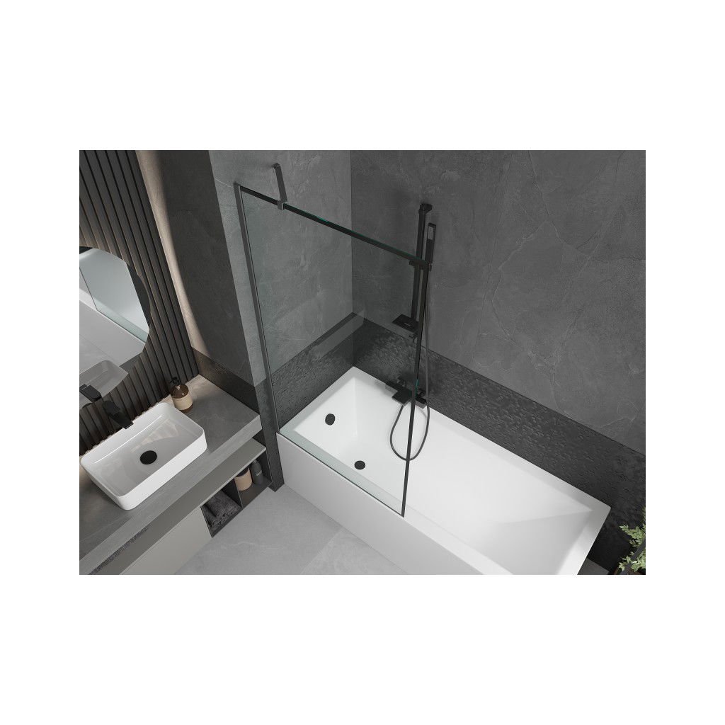 Mexen Next, 1-křídlová vanová zástěna 90 x 150 cm, 6mm čiré sklo - černý vzor, grafitová, 895-090-000-00-70-95