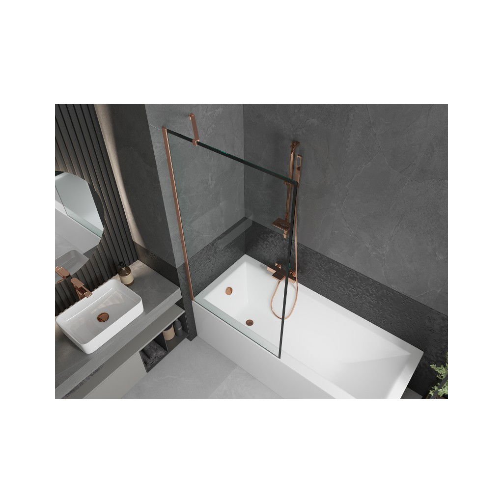 Mexen Next, 1-křídlová vanová zástěna 90 x 150 cm, 6mm čiré sklo - černý vzor, měděná matná, 895-090-000-00-70-65