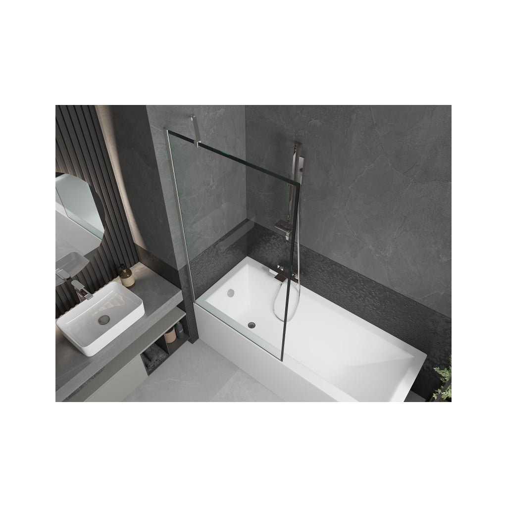 Mexen Next, 1-křídlová vanová zástěna 90 x 150 cm, 6mm čiré sklo - černý vzor, ocelová, 895-090-000-00-70-97