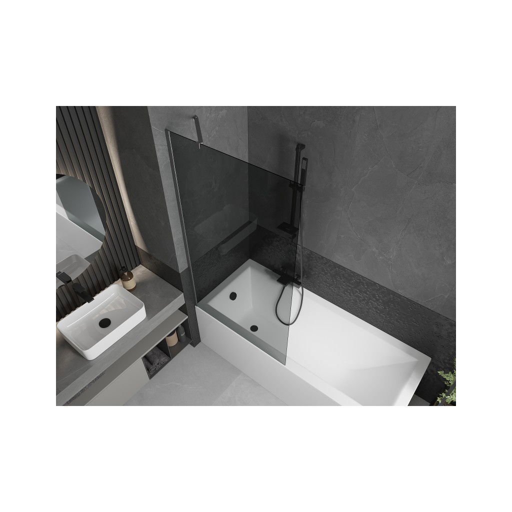 Mexen Next, 1-křídlová vanová zástěna 90 x 150 cm, 6mm šedé sklo, broušená grafitová, 895-090-000-00-40-66