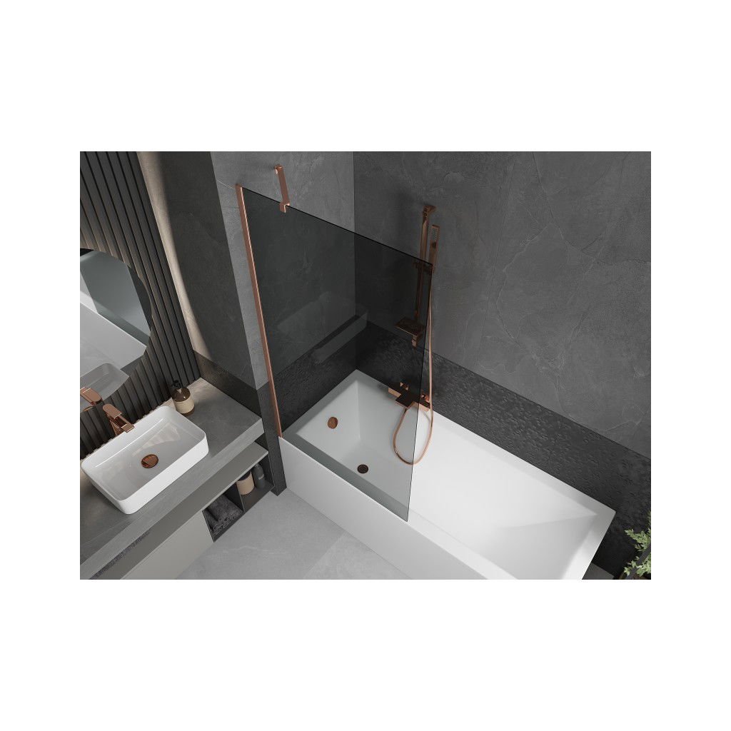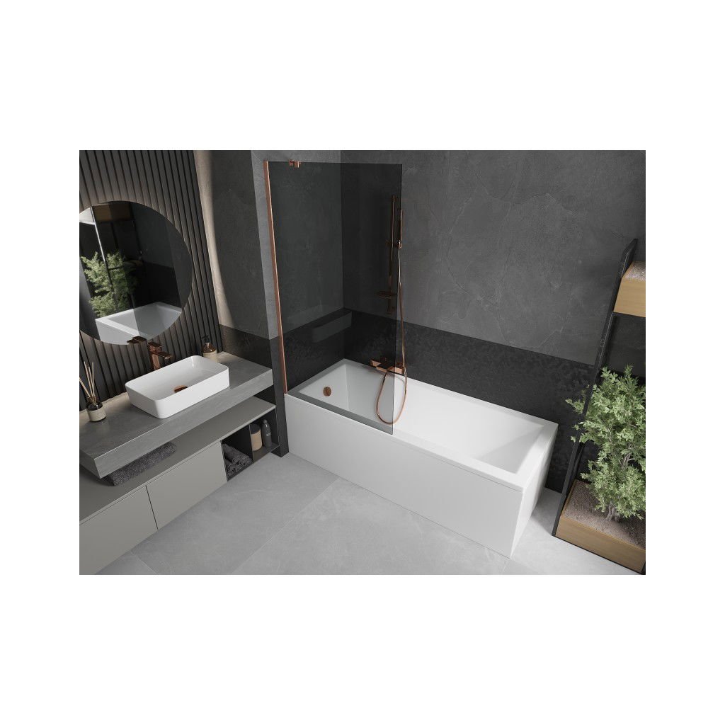 Mexen Next, 1-křídlová vanová zástěna 90 x 150 cm, 6mm šedé sklo, měděná matná, 895-090-000-00-40-65
