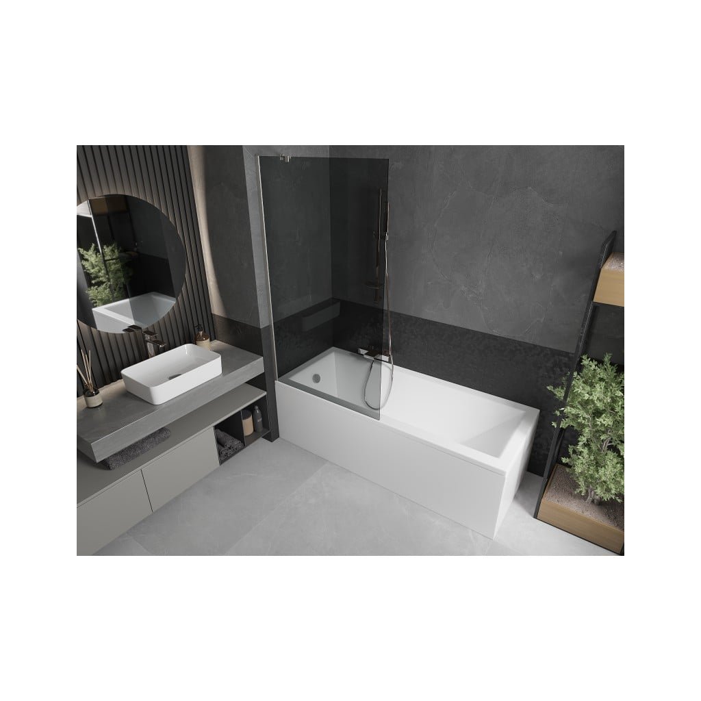 Mexen Next, 1-křídlová vanová zástěna 90 x 150 cm, 6mm šedé sklo, ocelová, 895-090-000-00-40-97
