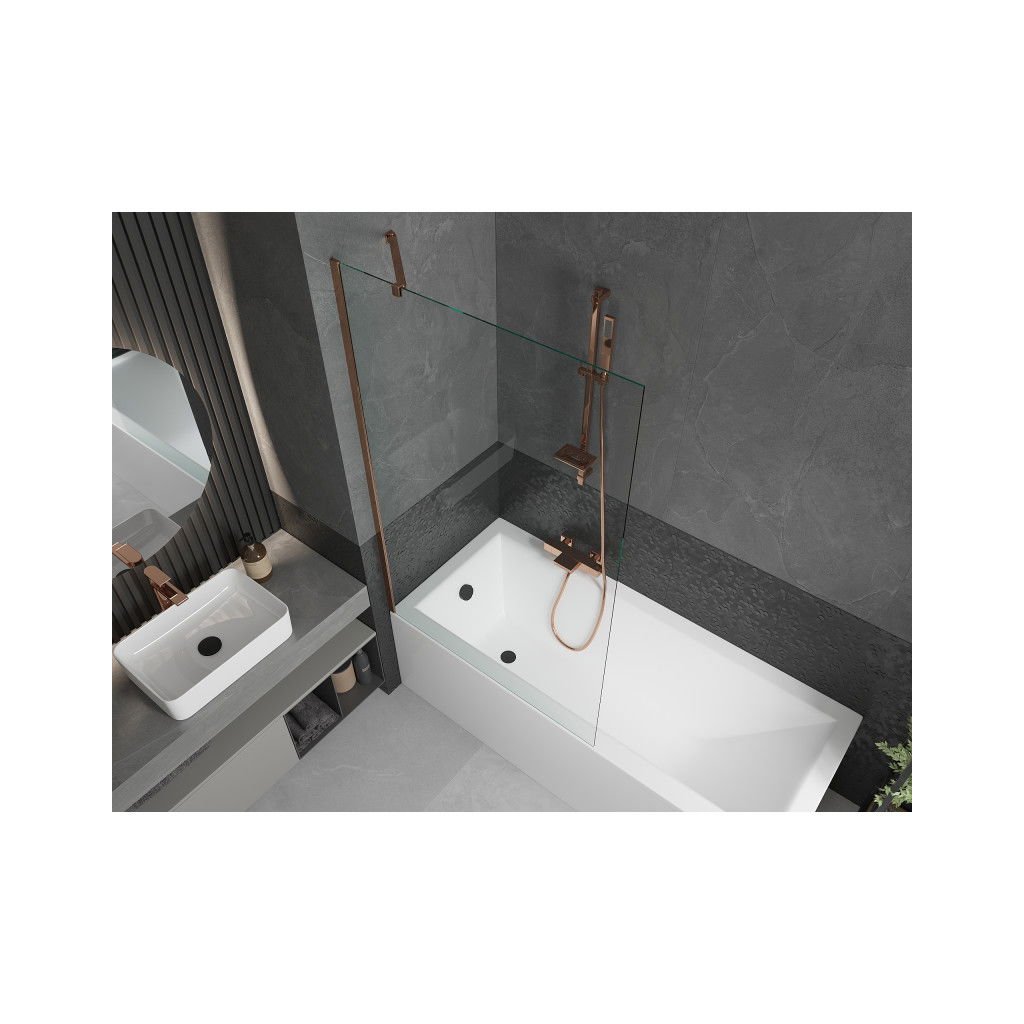 Mexen Next, vanová zástěna 1-křídlová 100 x 150 cm, fixní křídlo, 6 mm čiré sklo, růžové zlato profil, 895-100-000-00-00-60