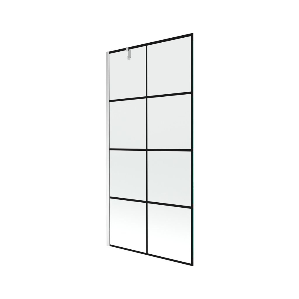 Mexen Next, vanová zástěna 1-křídlová 100 x 150 cm, fixní křídlo, 6 mm čiré sklo s černým vzorem, chromový profil, 895-100-000-00-77-01