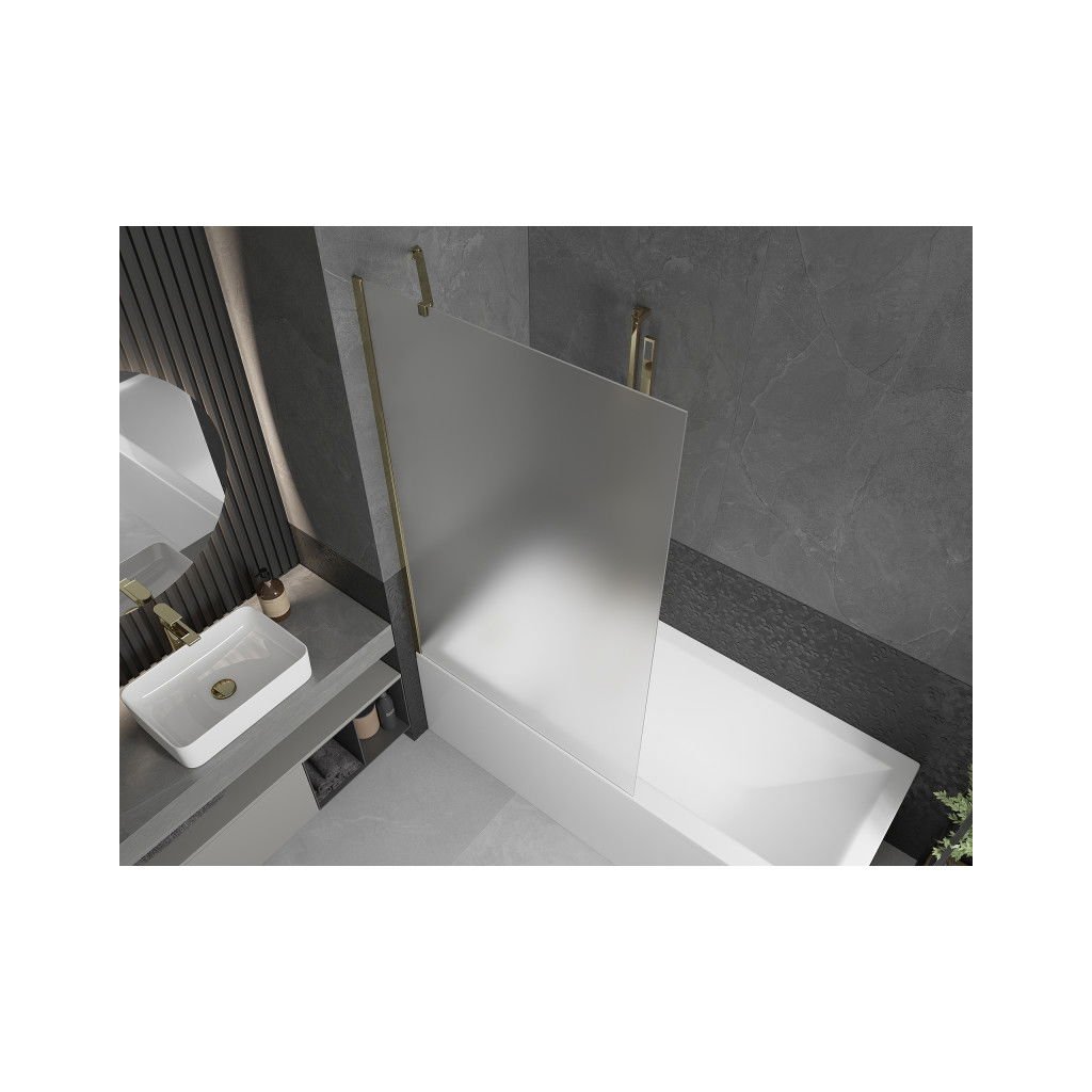 Mexen Next, vanová zástěna 1-křídlová 100 x 150 cm, fixní křídlo, 6 mm námraza sklo, zlatý profil, 895-100-000-00-30-50