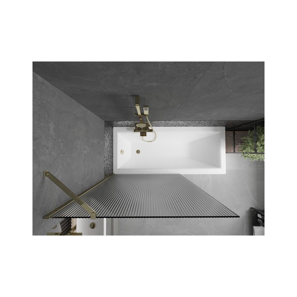 Mexen Next, vanová zástěna 1-křídlová 100 x 150 cm, fixní křídlo, 6 mm sklo s pruhy, zlatý lesklý profil, 895-100-000-00-09-50