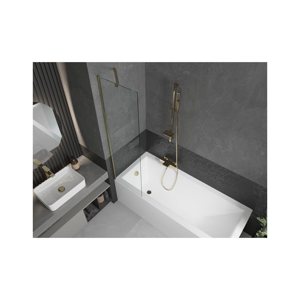 Mexen Next, vanová zástěna 1-křídlová 50 x 150 cm, fixní křídlo, 6 mm čiré sklo, zlatý profil, 895-050-000-00-00-50