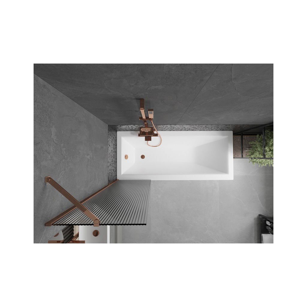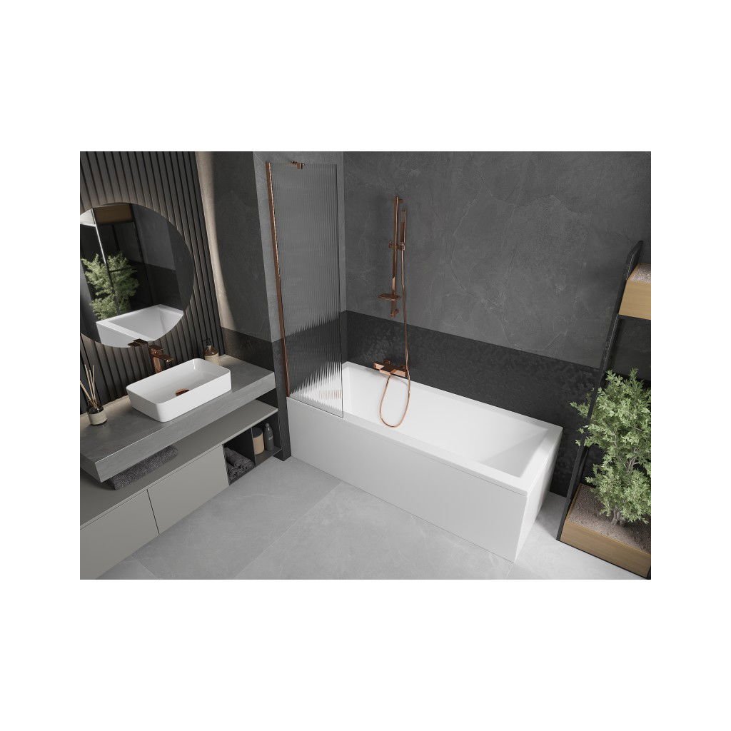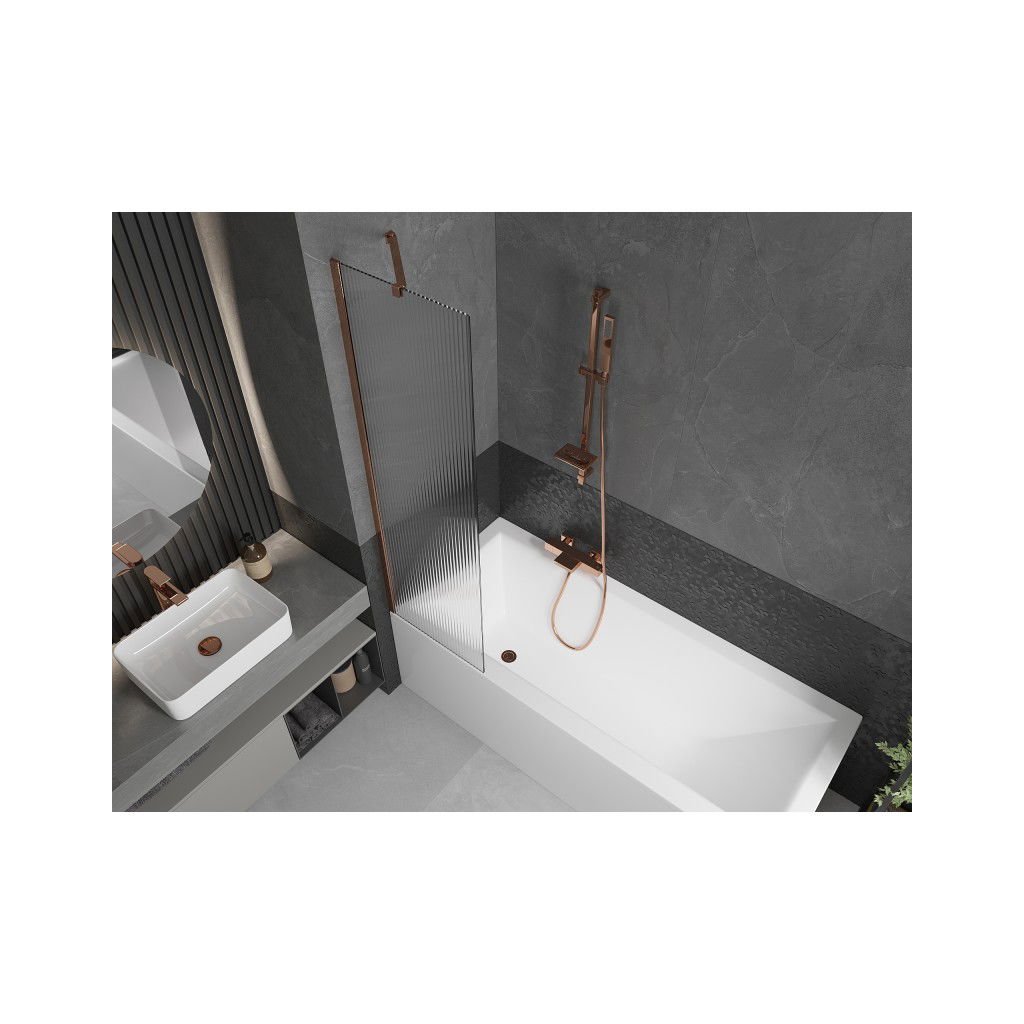 Mexen Next, vanová zástěna 1-křídlová 50 x 150 cm, fixní křídlo, 6 mm sklo s pruhy, růžové zlato profil, 895-050-000-00-09-60