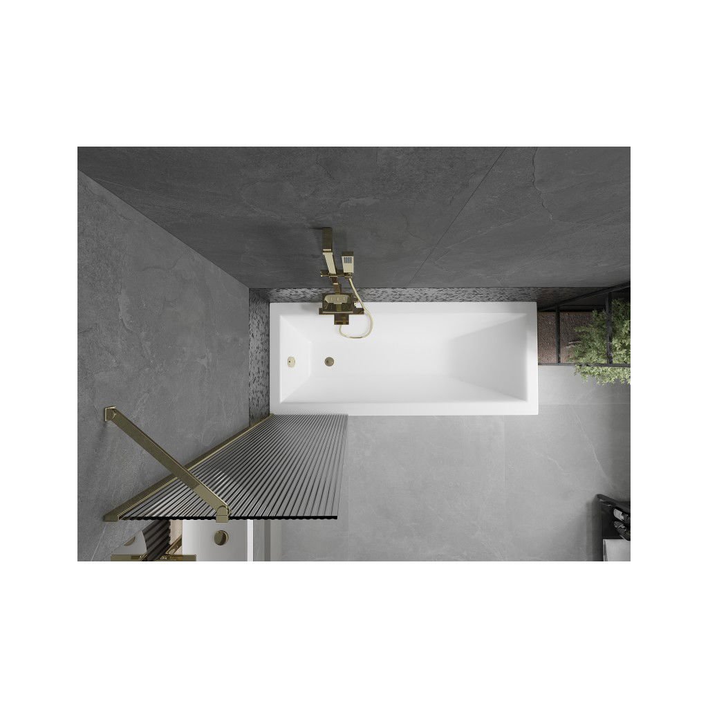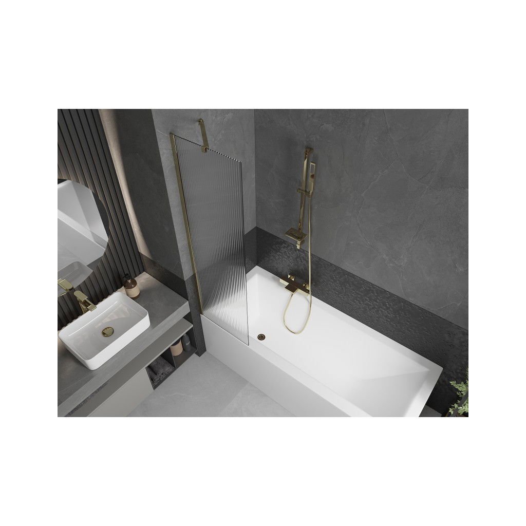 Mexen Next, vanová zástěna 1-křídlová 50 x 150 cm, fixní křídlo, 6 mm sklo s pruhy, zlatý lesklý profil, 895-050-000-00-09-50