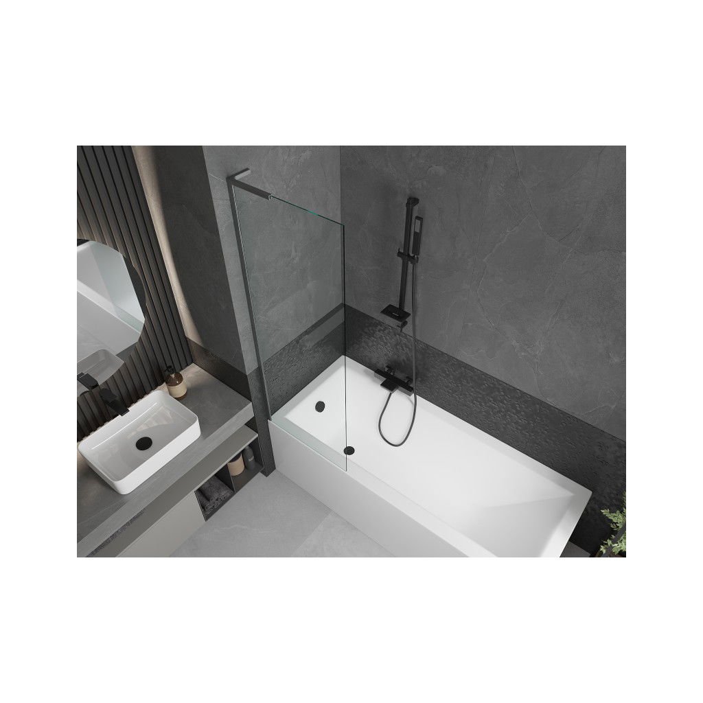 Mexen Next, vanová zástěna 1-křídlová 60 x 150 cm, fixní křídlo, 6 mm čiré sklo, broušený grafit profil, 895-060-000-03-00-66