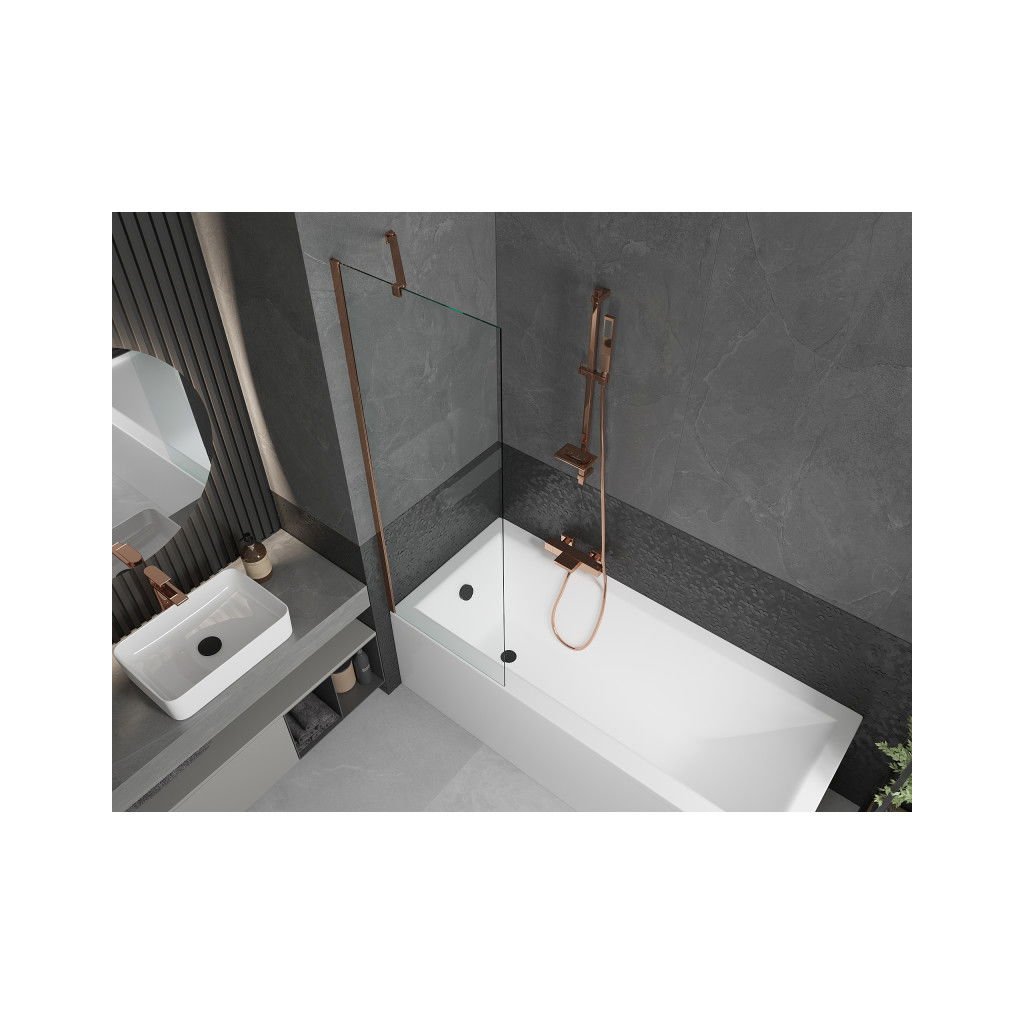 Mexen Next, vanová zástěna 1-křídlová 60 x 150 cm, fixní křídlo, 6 mm čiré sklo, růžové zlato profil, 895-060-000-00-00-60