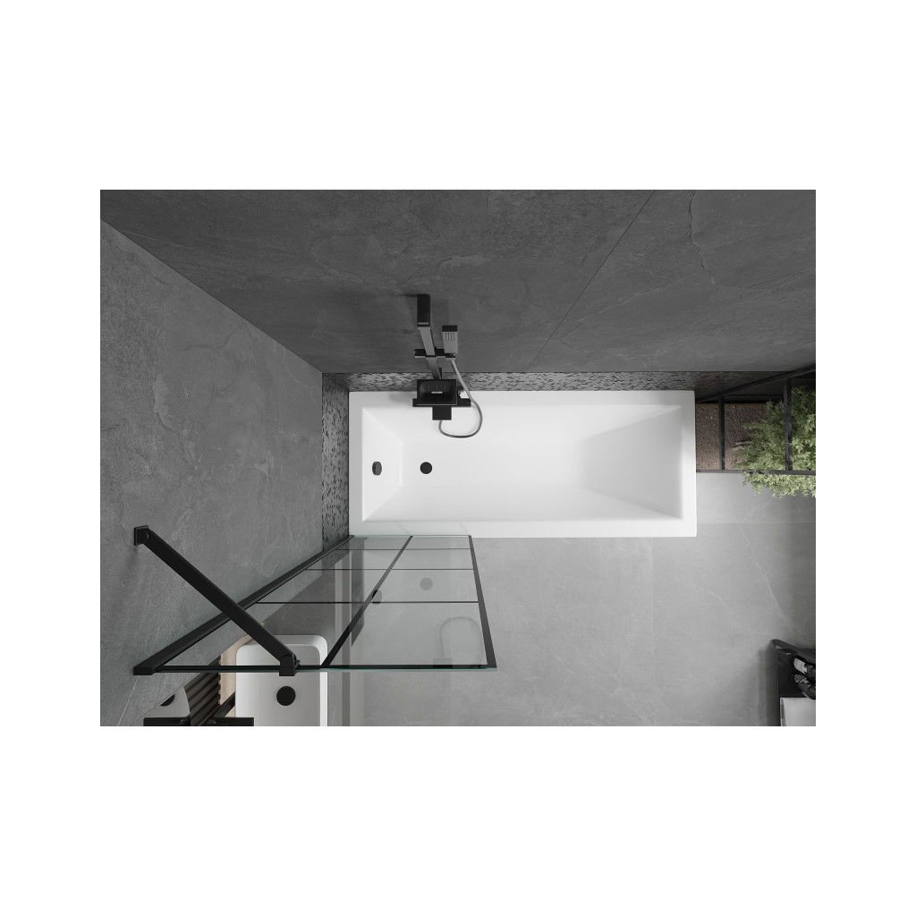 Mexen Next, vanová zástěna 1-křídlová 60 x 150 cm, fixní křídlo, 6 mm čiré sklo s černým vzorem, černý profil, 895-060-000-00-77-70