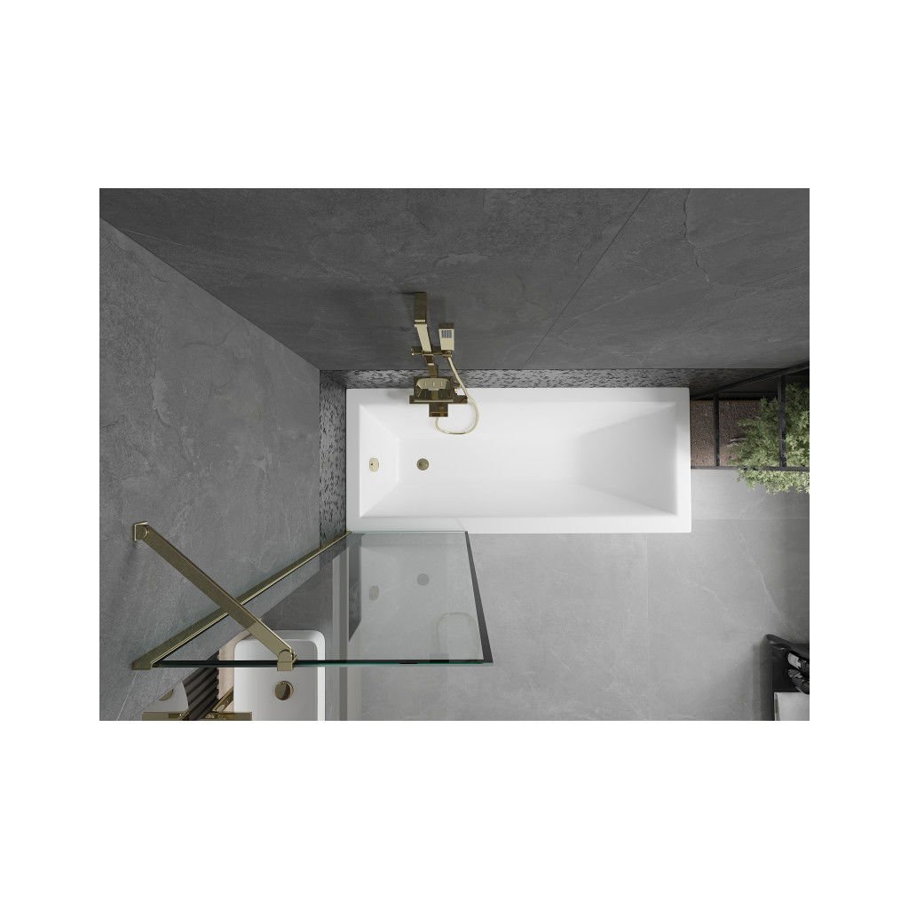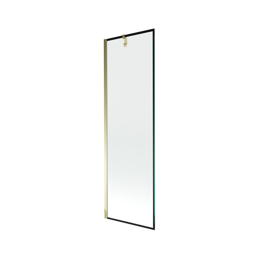 Mexen Next, vanová zástěna 1-křídlová 60 x 150 cm, fixní křídlo, 6 mm čiré sklo s černým vzorem, zlatý profil, 895-060-000-00-70-50
