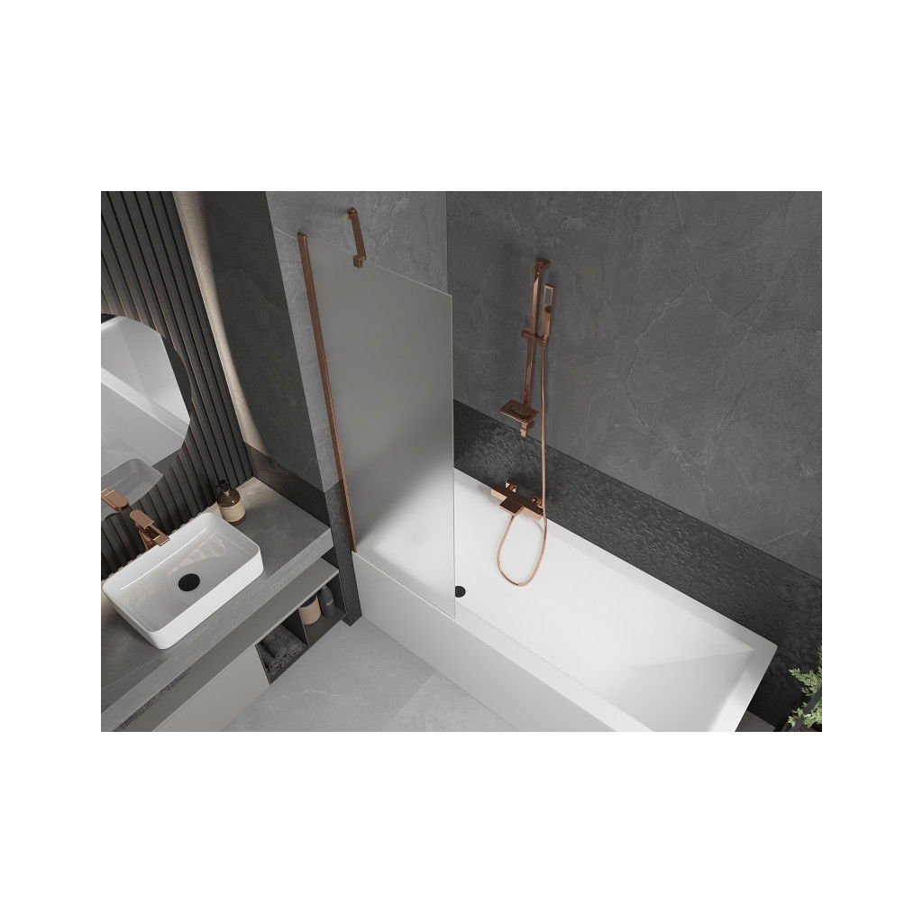 Mexen Next, vanová zástěna 1-křídlová 60 x 150 cm, fixní křídlo, 6 mm námraza sklo, růžové zlato profil, 895-060-000-00-30-60