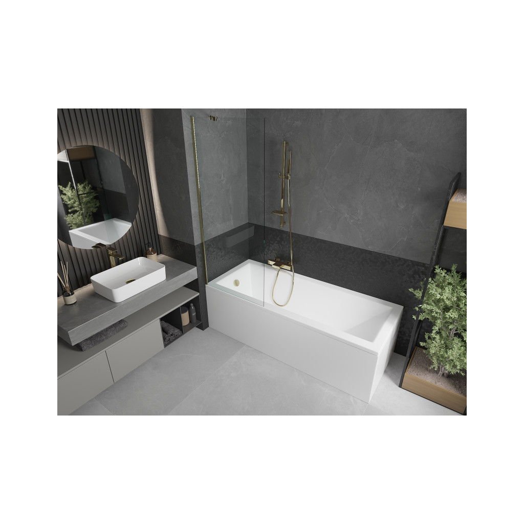 Mexen Next, vanová zástěna 1-křídlová 70 x 150 cm, fixní křídlo, 6 mm čiré sklo, zlatý profil, 895-070-000-00-00-50