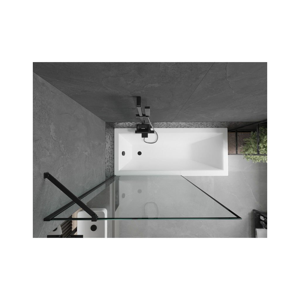 Mexen Next, vanová zástěna 1-křídlová 70 x 150 cm, fixní křídlo, 6 mm čiré sklo s černým vzorem, černý profil, 895-070-000-00-70-70