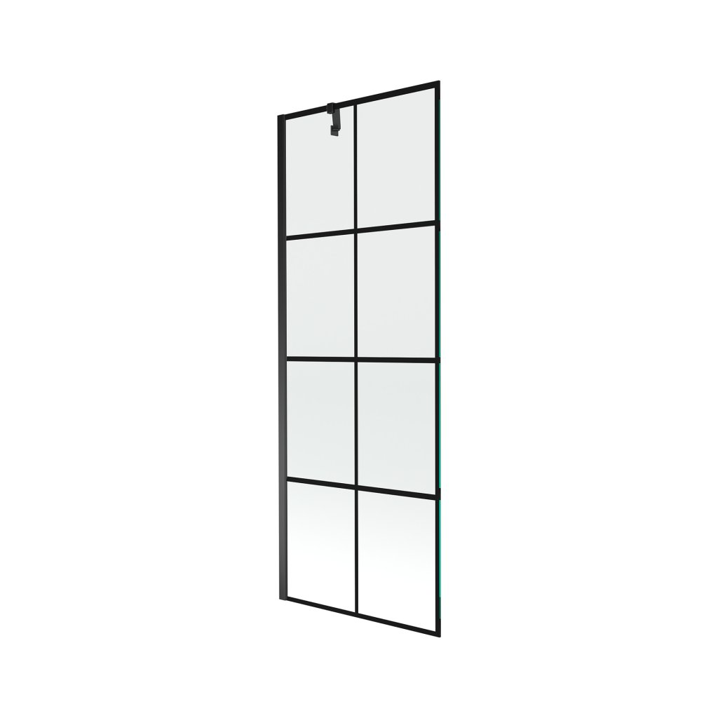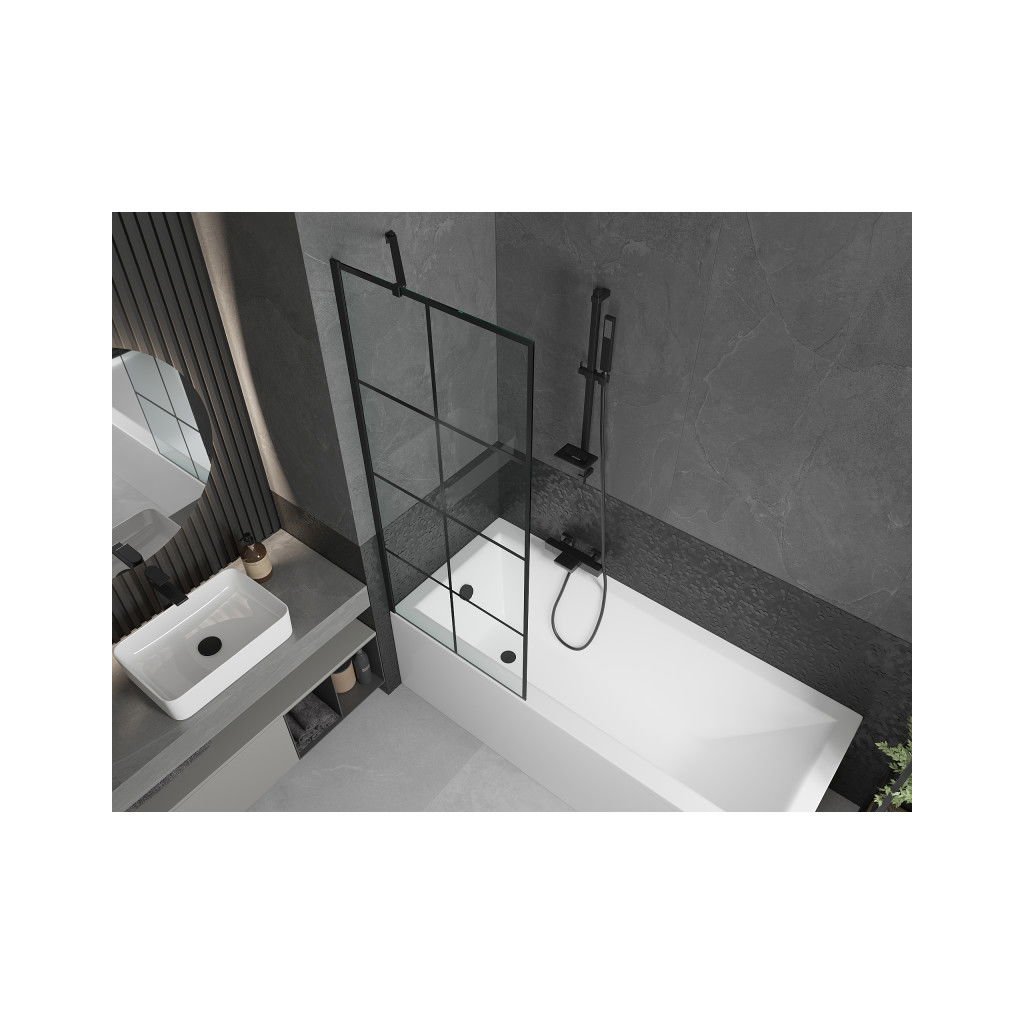 Mexen Next, vanová zástěna 1-křídlová 70 x 150 cm, fixní křídlo, 6 mm čiré sklo s černým vzorem, černý profil, 895-070-000-00-77-70