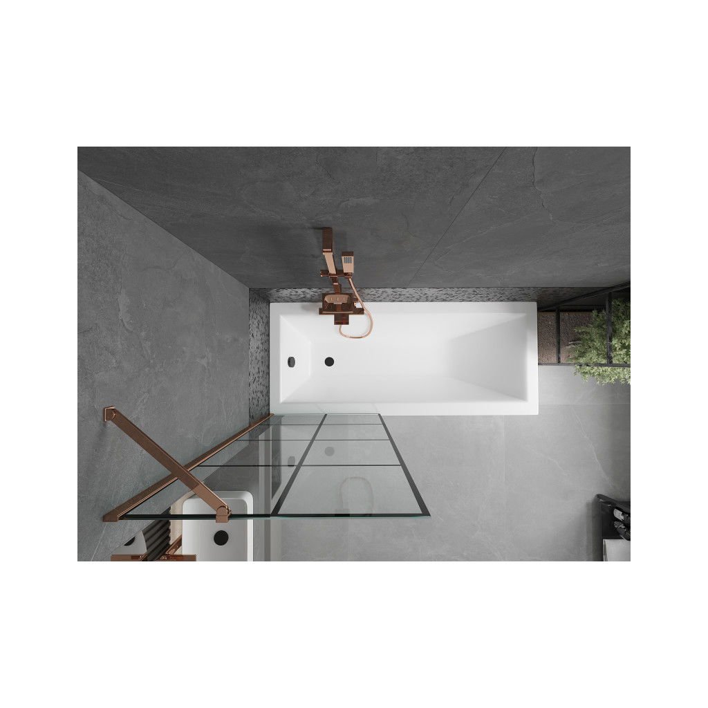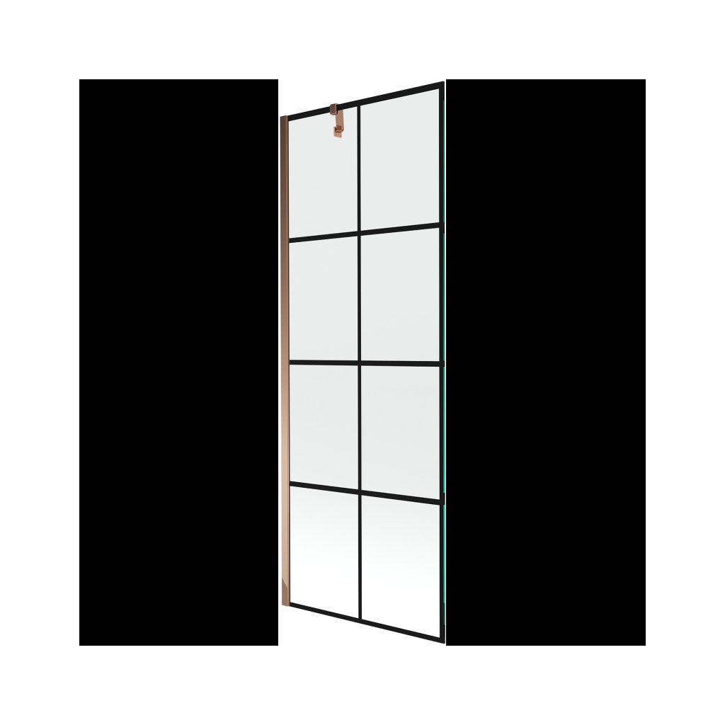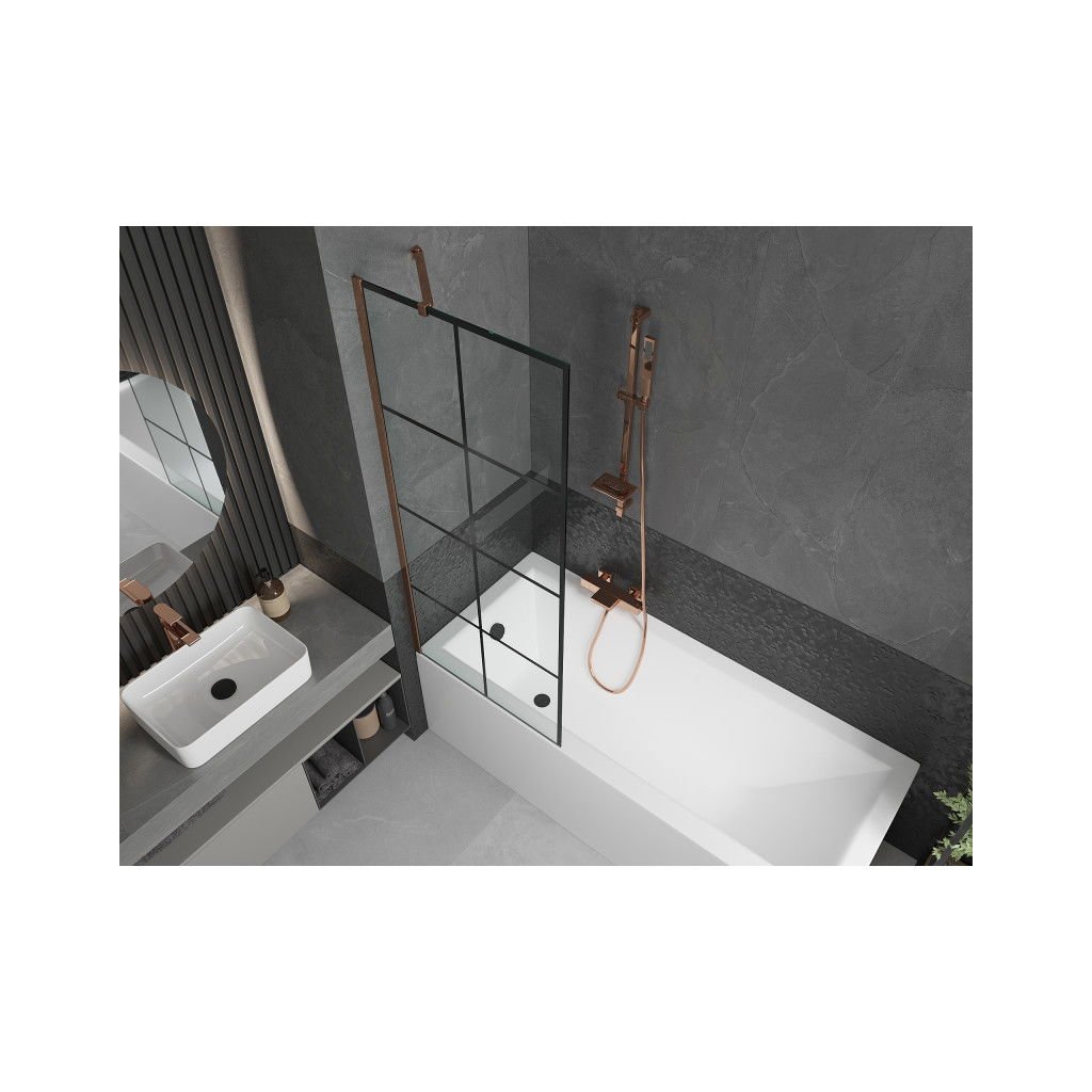 Mexen Next, vanová zástěna 1-křídlová 70 x 150 cm, fixní křídlo, 6 mm čiré sklo s černým vzorem, růžové zlato profil, 895-070-000-00-77-60