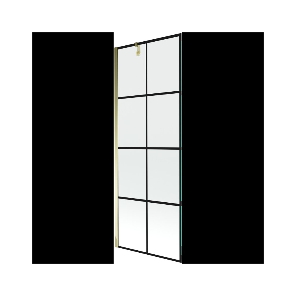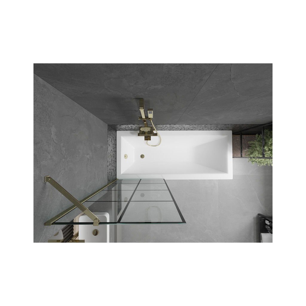 Mexen Next, vanová zástěna 1-křídlová 70 x 150 cm, fixní křídlo, 6 mm čiré sklo s černým vzorem, zlatý profil, 895-070-000-00-77-50