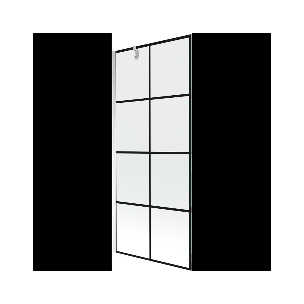Mexen Next, vanová zástěna 1-křídlová 80 x 150 cm, fixní křídlo, 6 mm čiré sklo s černým vzorem, chromový profil, 895-080-000-00-77-01
