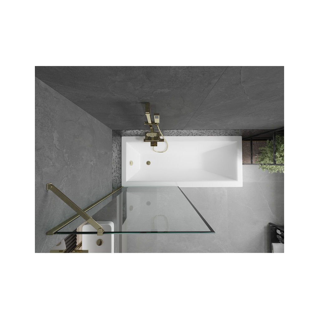 Mexen Next, vanová zástěna 1-křídlová 80 x 150 cm, fixní křídlo, 6 mm čiré sklo s černým vzorem, zlatý profil, 895-080-000-00-70-50