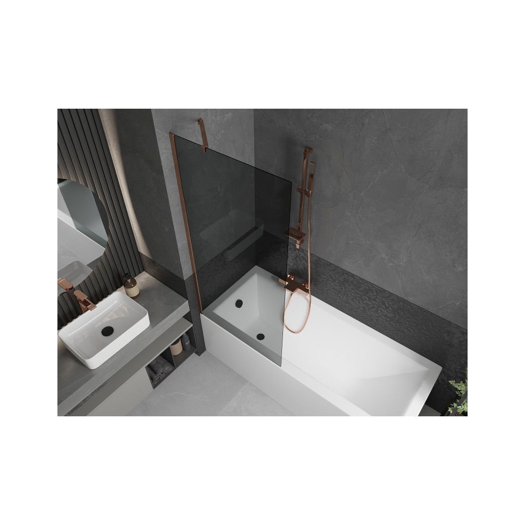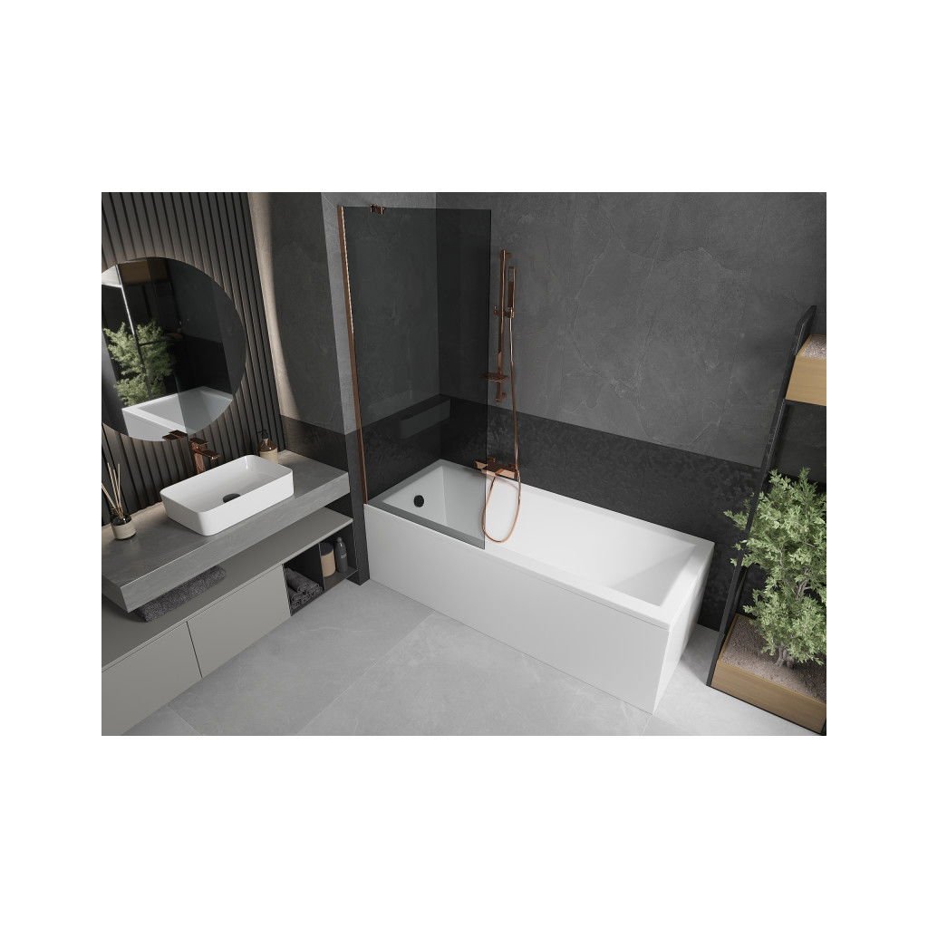 Mexen Next, vanová zástěna 1-křídlová 80 x 150 cm, fixní křídlo, 6 mm šedé sklo, růžové zlato profil, 895-080-000-00-40-60