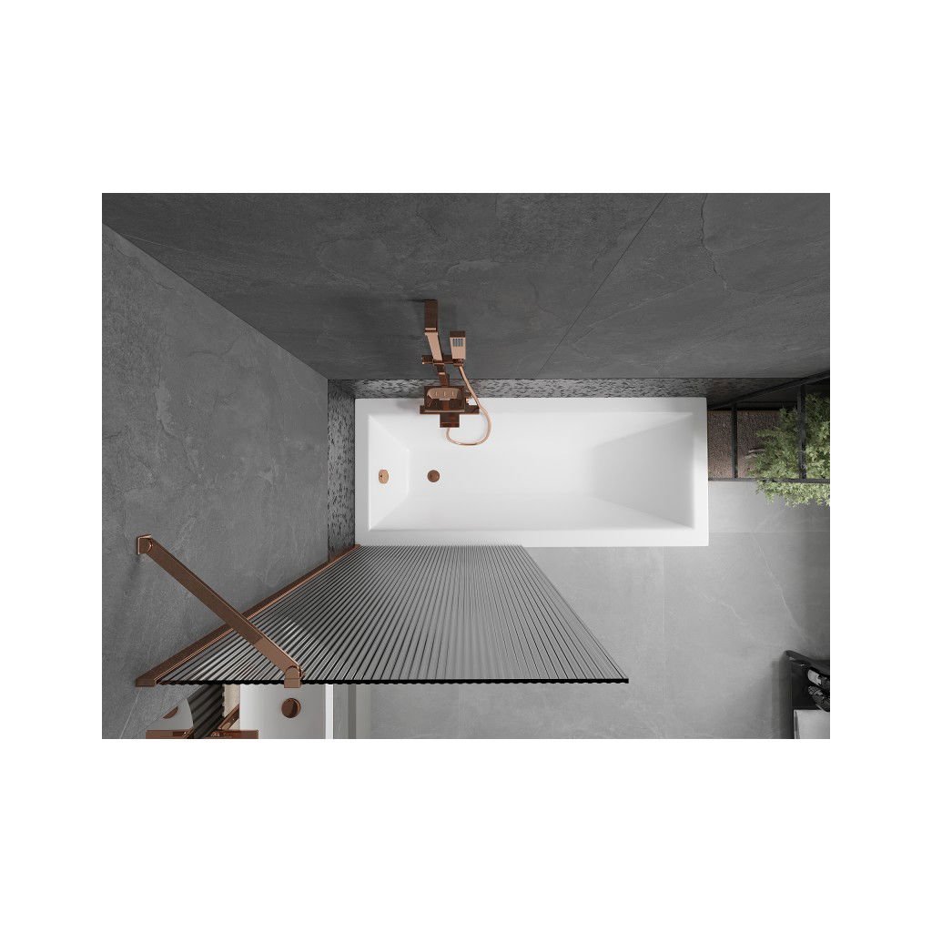 Mexen Next, vanová zástěna 1-křídlová 80 x 150 cm, fixní křídlo, 6 mm sklo s pruhy, růžové zlato profil, 895-080-000-00-09-60
