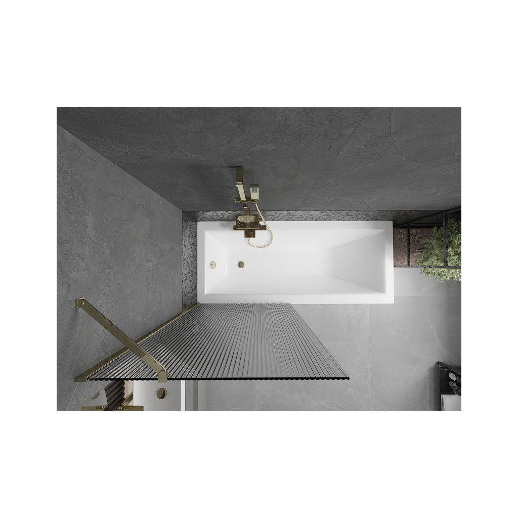 Mexen Next, vanová zástěna 1-křídlová 80 x 150 cm, fixní křídlo, 6 mm sklo s pruhy, zlatý lesklý profil, 895-080-000-00-09-50