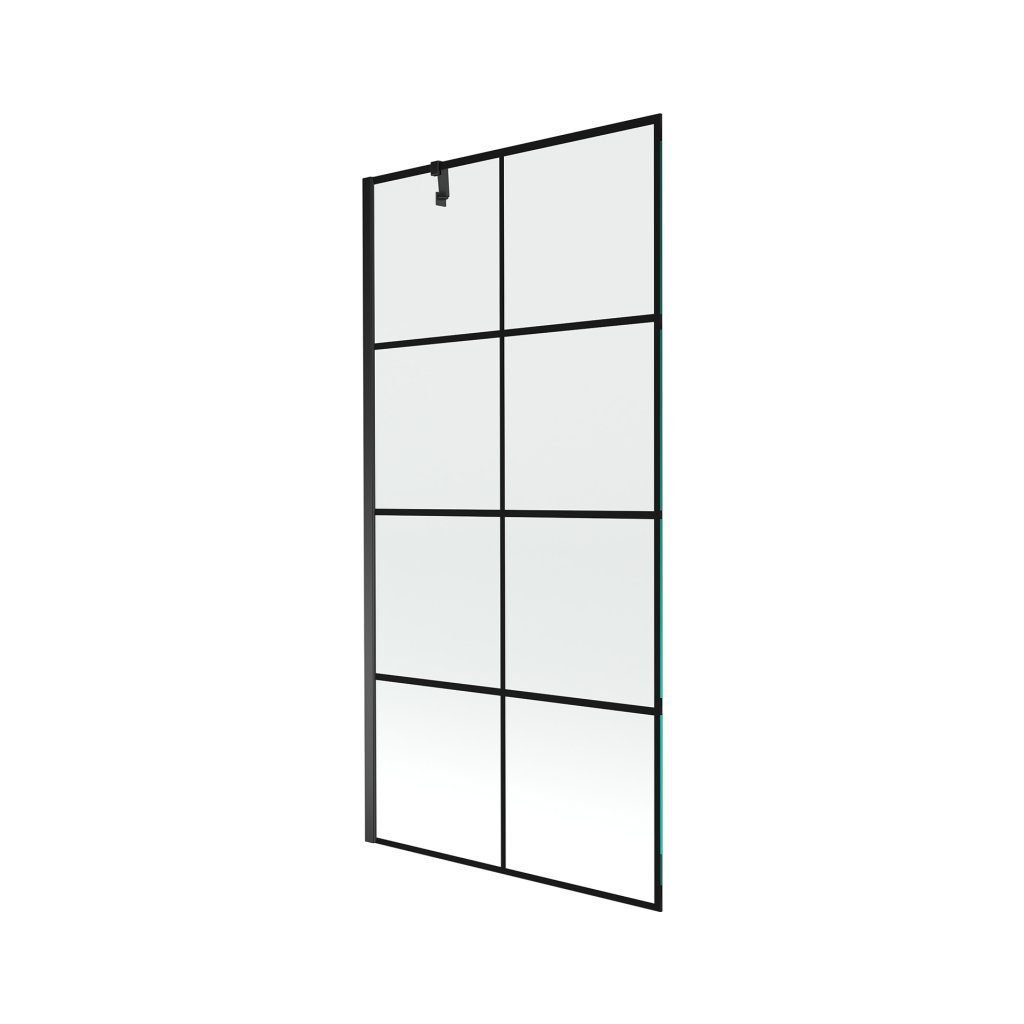 Mexen Next, vanová zástěna 1-křídlová 90 x 150 cm, fixní křídlo, 6 mm čiré sklo s černým vzorem, černý profil, 895-090-000-00-77-70