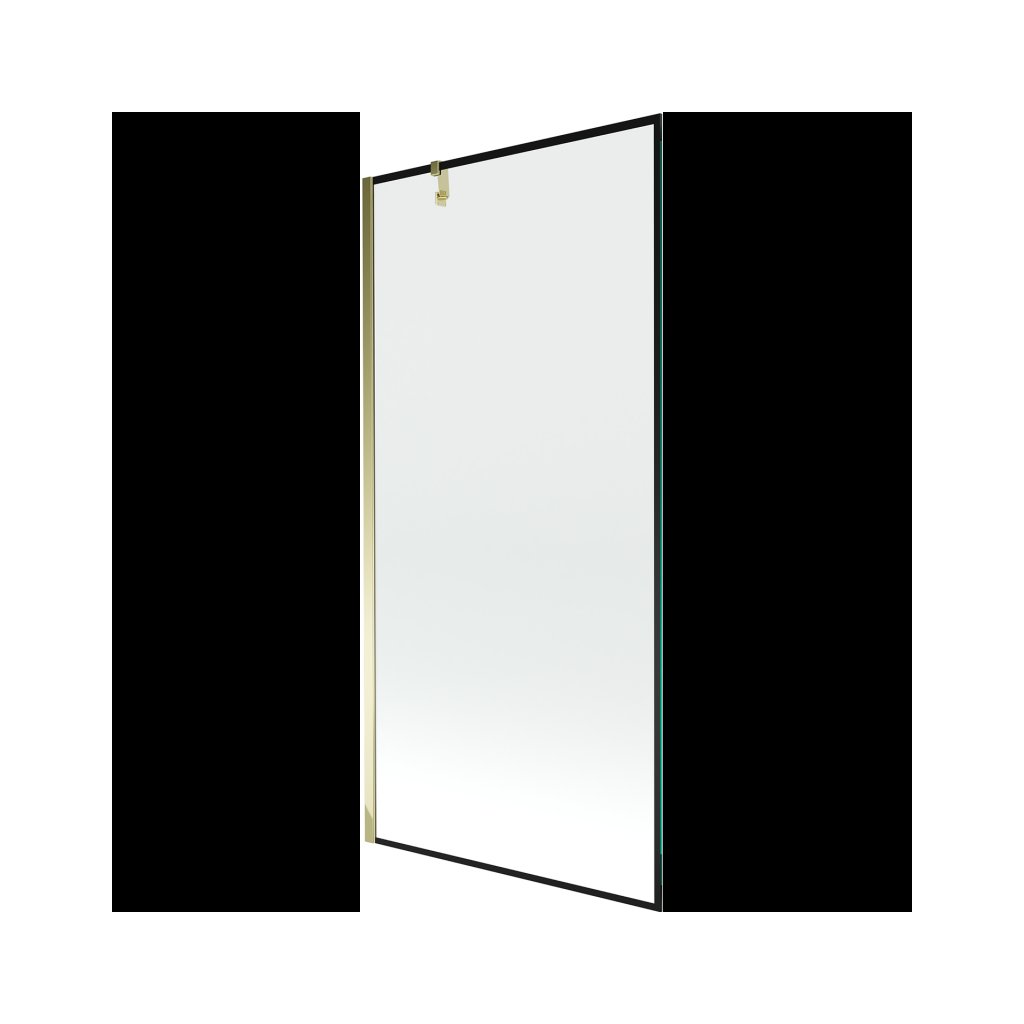 Mexen Next, vanová zástěna 1-křídlová 90 x 150 cm, fixní křídlo, 6 mm čiré sklo s černým vzorem, zlatý profil, 895-090-000-00-70-50