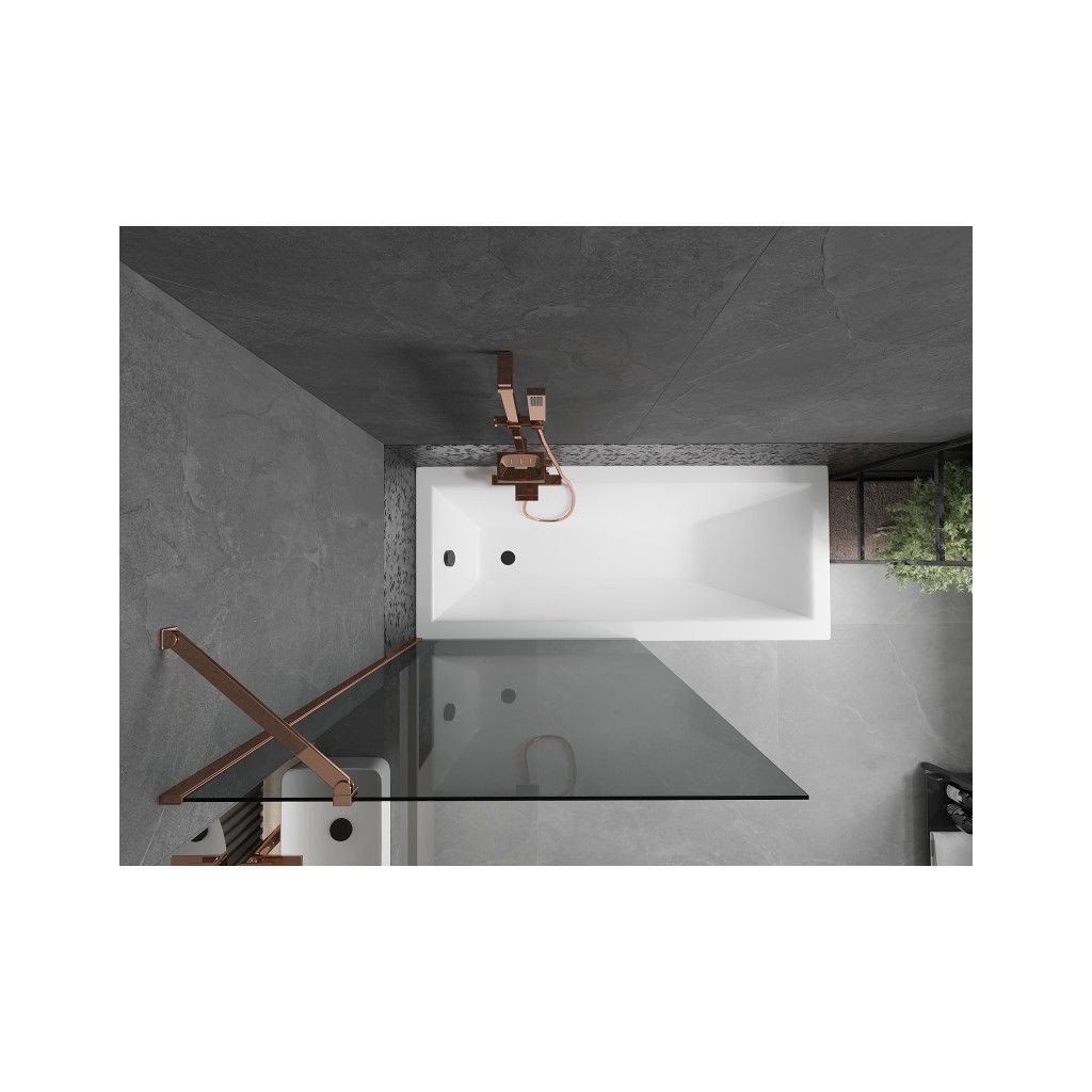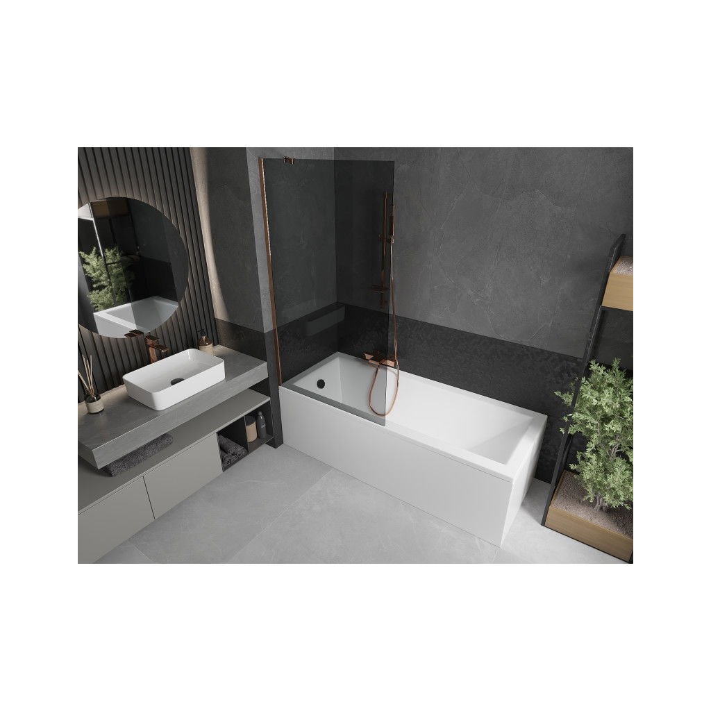 Mexen Next, vanová zástěna 1-křídlová 90 x 150 cm, fixní křídlo, 6 mm šedé sklo, růžové zlato profil, 895-090-000-00-40-60