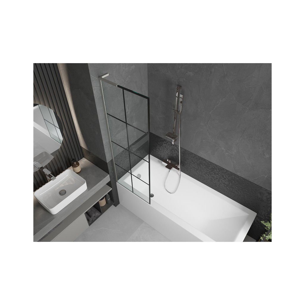 Mexen Next L, 1-křídlová vanová zástěna 60 x 150 cm, 6mm čiré sklo-černý vzor, 6mm čiré sklo, profil broušená ocel, 895-060-000-03-77-97