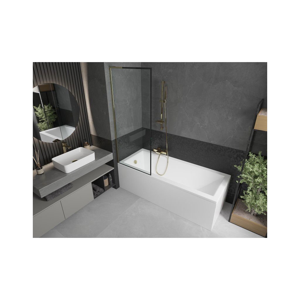 Mexen Next L, 1-křídlová vanová zástěna 70 x 150 cm, 6mm čiré sklo-černý vzor, zlatý lesklý profil, 895-070-000-03-70-50