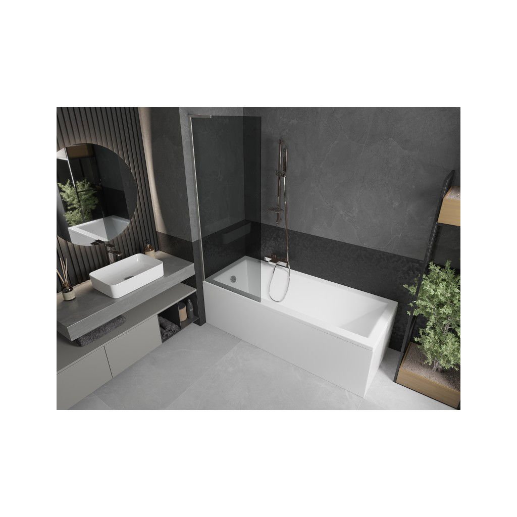 Mexen Next L, 1-křídlová vanová zástěna 70 x 150 cm, 6mm šedé sklo, 6mm čiré sklo, profil broušená ocel, 895-070-000-03-40-97