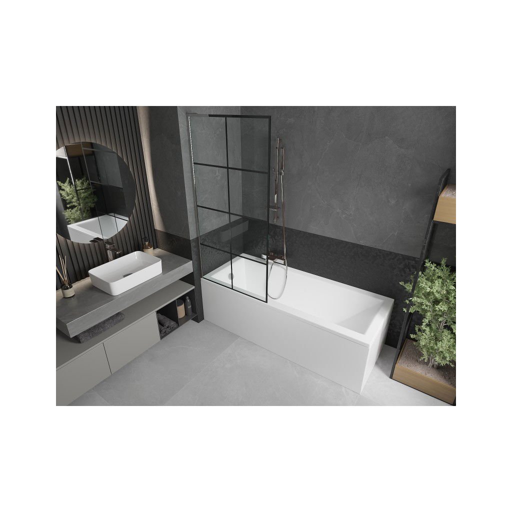 Mexen Next L, 1-křídlová vanová zástěna 80 x 150 cm, 6mm čiré sklo-černý vzor, chromový profil, 895-080-000-03-77-01