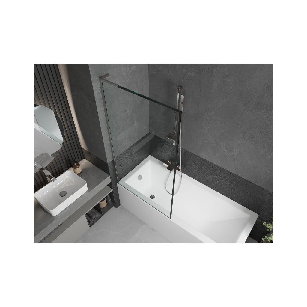 Mexen Next L, 1-křídlová vanová zástěna 90 x 150 cm, 6mm čiré sklo-černý vzor, chromový profil, 895-090-000-03-70-01