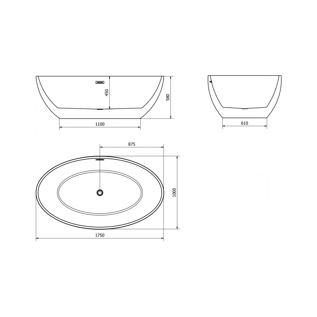 Mexen Nike, volně stojící vana 175 x 100 cm, bílá, bílý přepad, 54071751000-20
