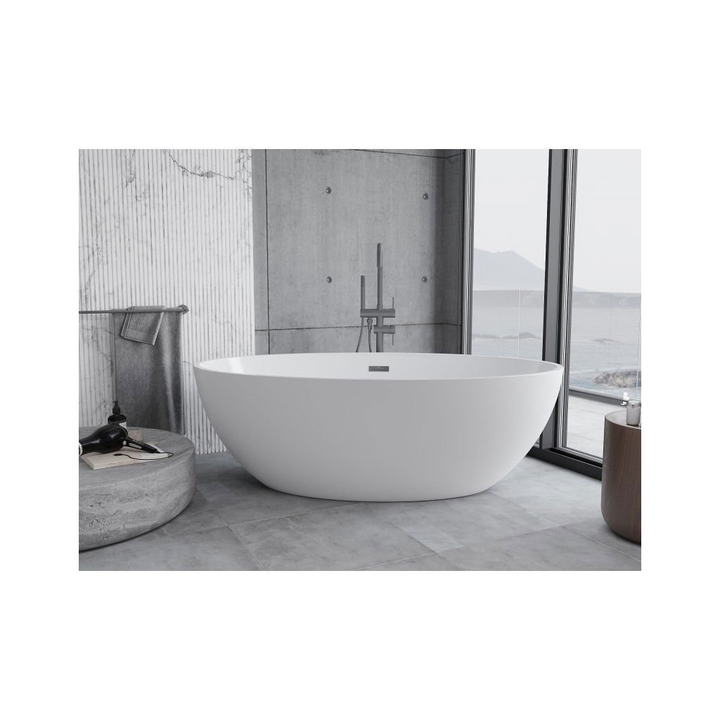 Mexen Nike, volně stojící vana 175 x 100 cm, bílá, grafitový matný hladký přepad, 54071751000-95