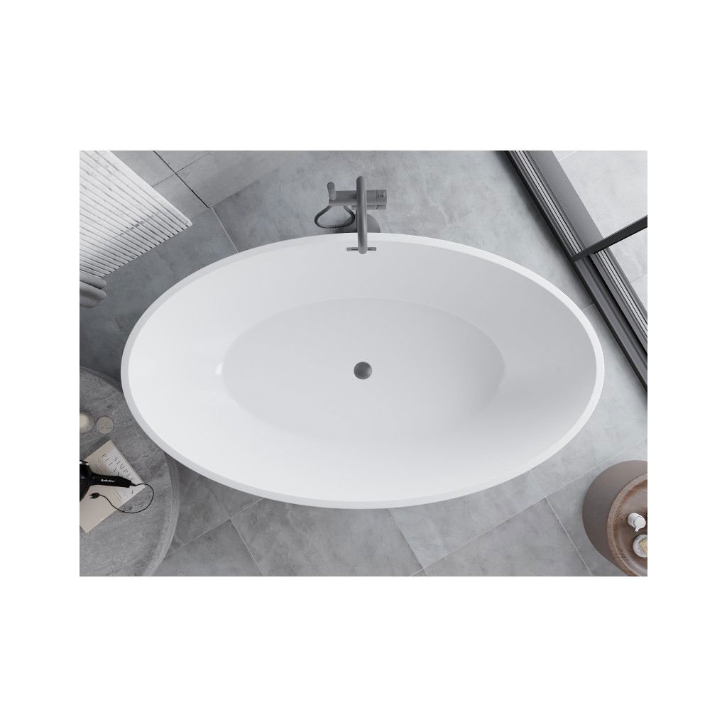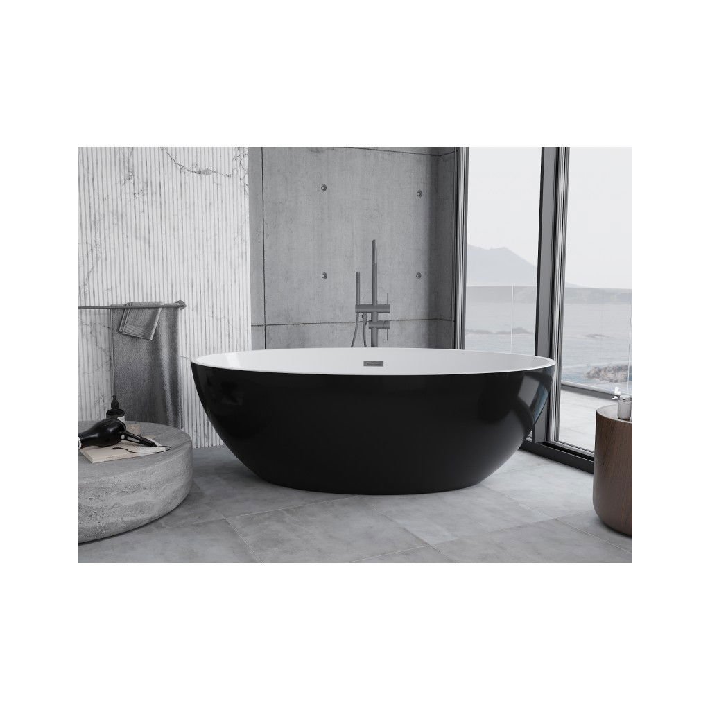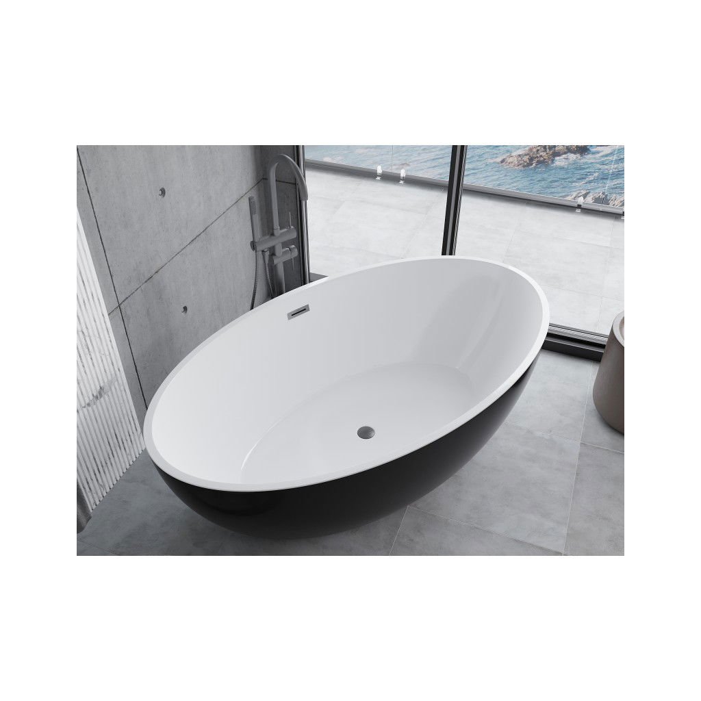 Mexen Nike, volně stojící vana 175 x 100 cm, bílá-černá, grafitový matný broušený přepad, 54071751075-66