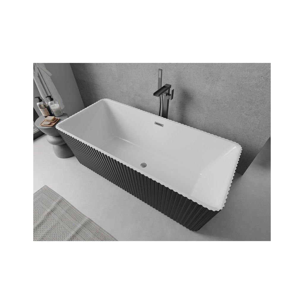 Mexen Nila, volně stojící rýhovaná vana 170 x 75 cm, bílá-černá, broušený grafit přepad, 52841708075-66