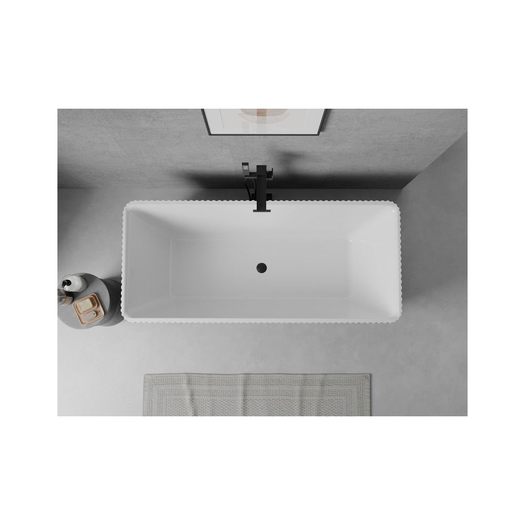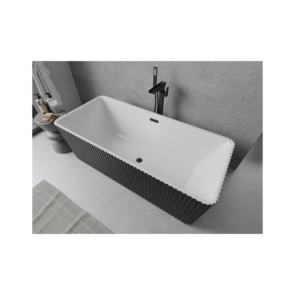 Mexen Nila, volně stojící rýhovaná vana 170 x 75 cm, bílá-černá, černý matný přepad, 52841708075-70