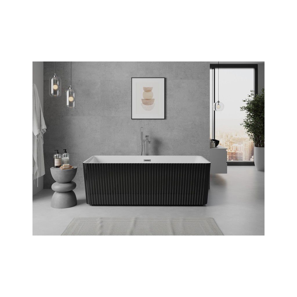 Mexen Nila, volně stojící rýhovaná vana 170 x 75 cm, bílá-černá, grafitový přepad, 52841708075-95